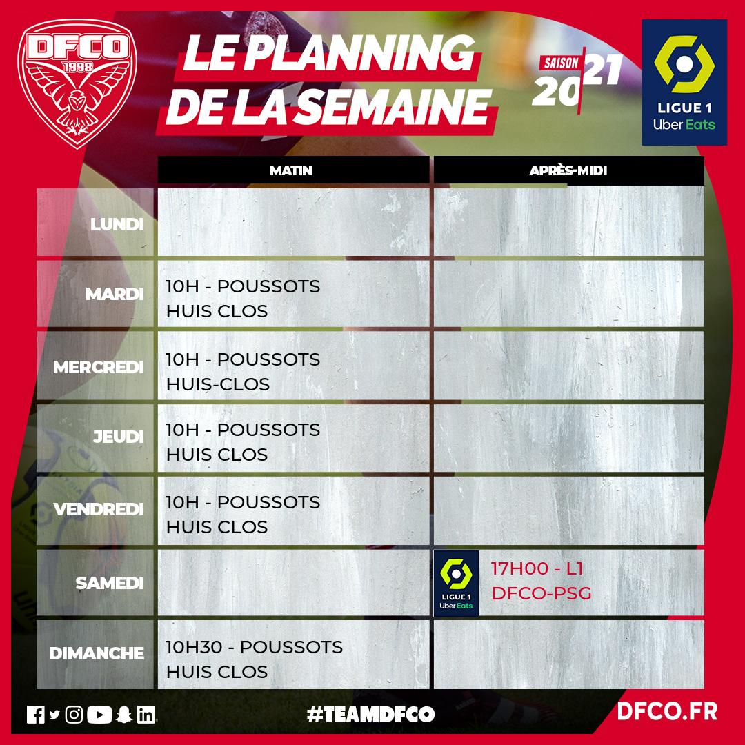Les Dijonnais seront opposés au PSG ce samedi à Gaston Gérard, coup d'envoi 17h. Retrouvez le planning de la semaine avant cette rencontre.