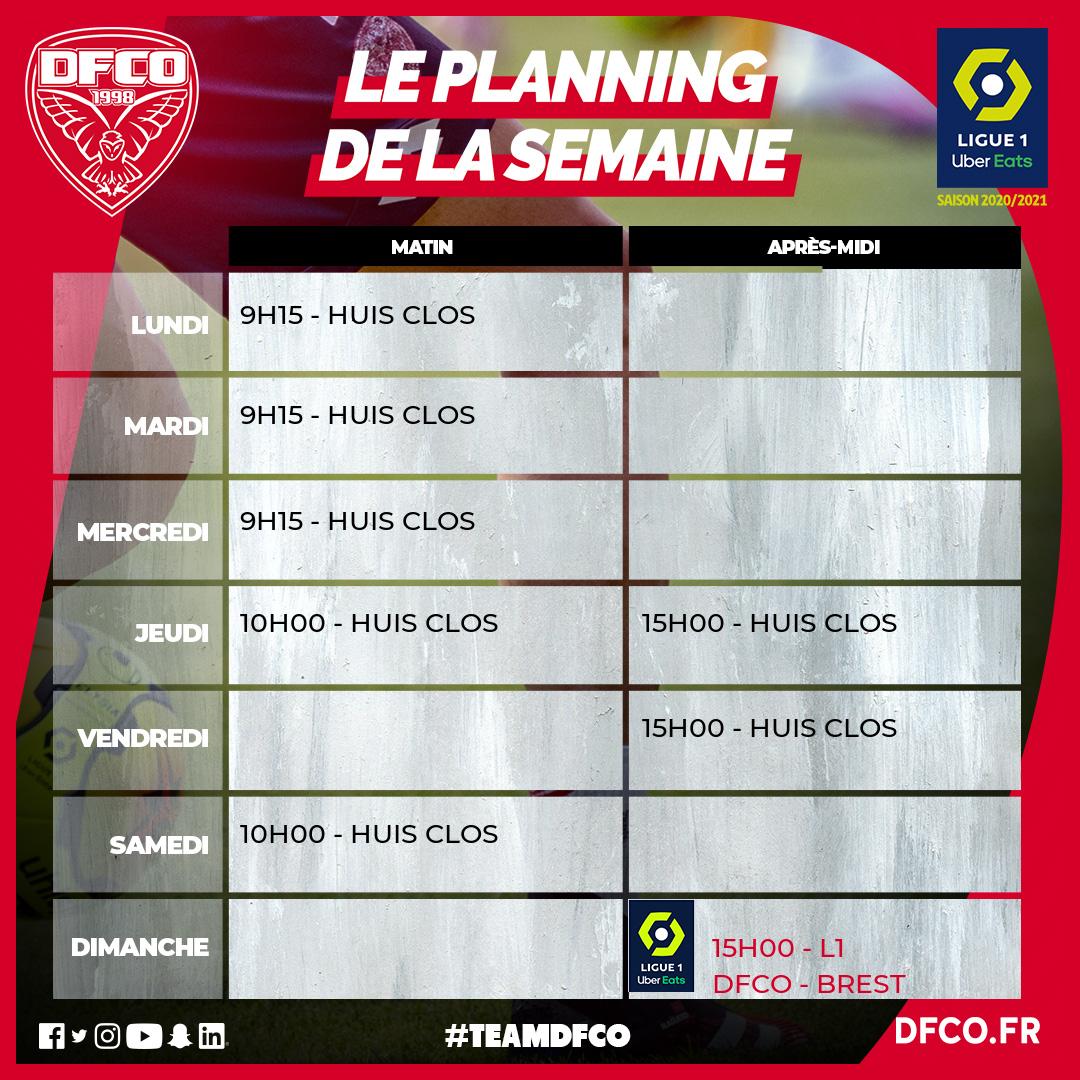 Le DFCO aura pour mission d"empocher sa première victoire de la saison face au Stade Brestois à Gaston-Gérard. Un match programmé dimanche 13 septembre à 15h00. Retrouvez le planning de la semaine !