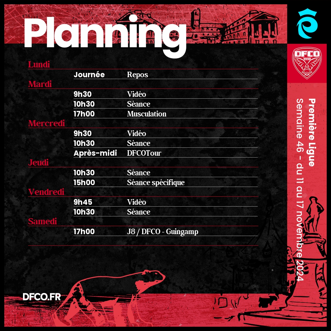 Le planning avant Guingamp