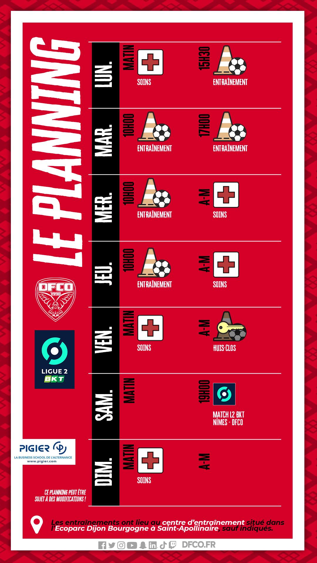 Le planning avant Nîmes-DFCO