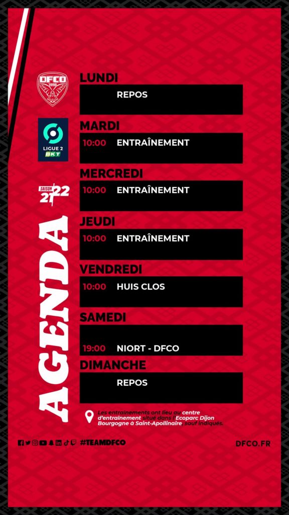 Le planning avant Niort-DFCO