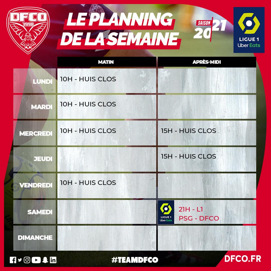 Stéphane Jobard et son staff ont programmé six séances collectives avant la rencontre PSG - DFCO, comptant pour la 8e journée de Ligue 1 Uber Eats.