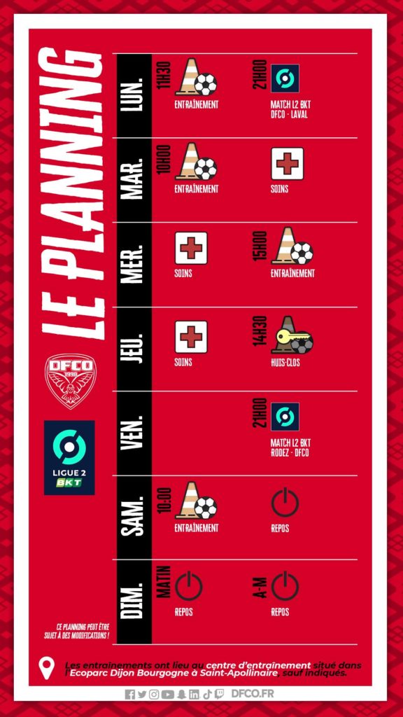 Le planning avant Rodez – DFCO