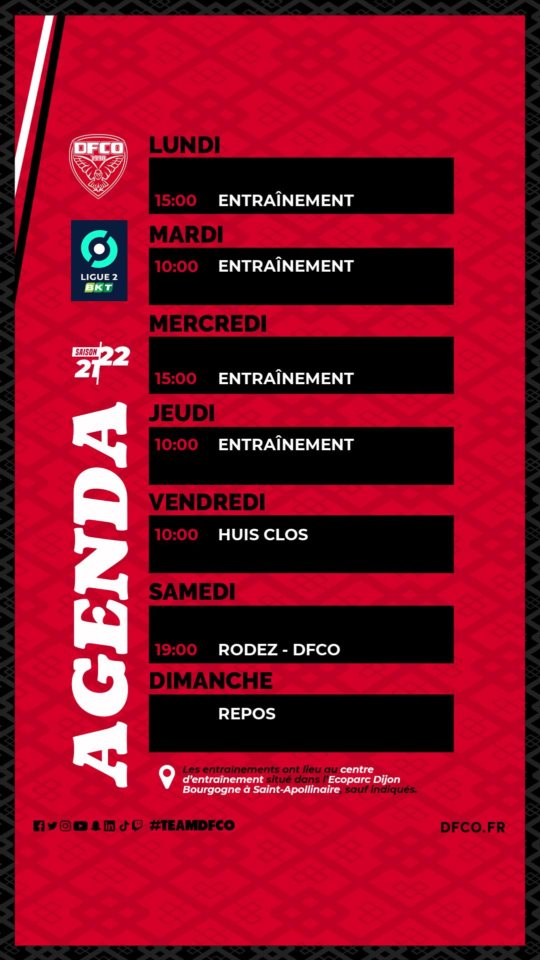 Le planning avant Rodez-DFCO