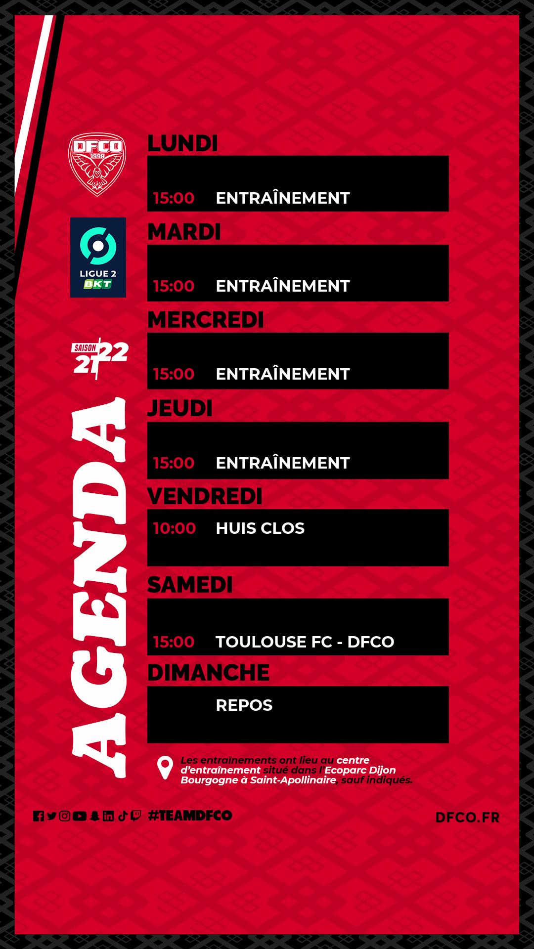 Avant de retrouver le championnat de Ligue 2 BKT, sur la pelouse du Toulouse FC samedi (15h00), le groupe professionnel effectuera cinq séances d'entraînement collectives.