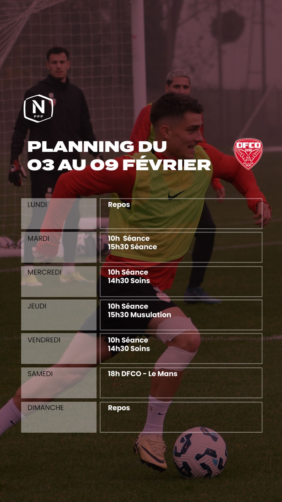 Nos Dijonnais retrouvent la compétition cette semaine avec la réception du Mans FC ce samedi à 18 heures. Découvrez le planning de la semaine.
