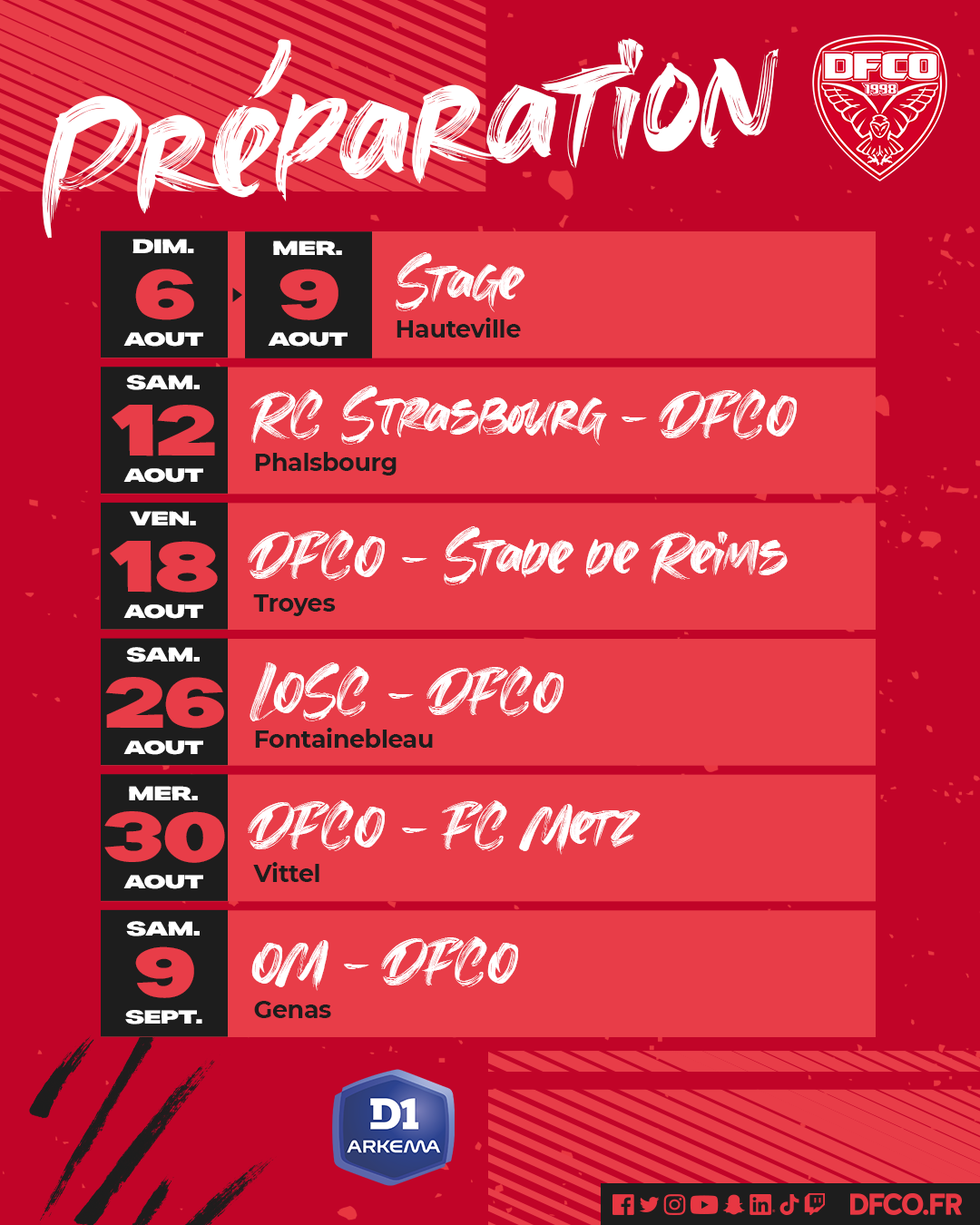 - Vendredi 18 août match contre le Stade de Reims à Troyes (18h)