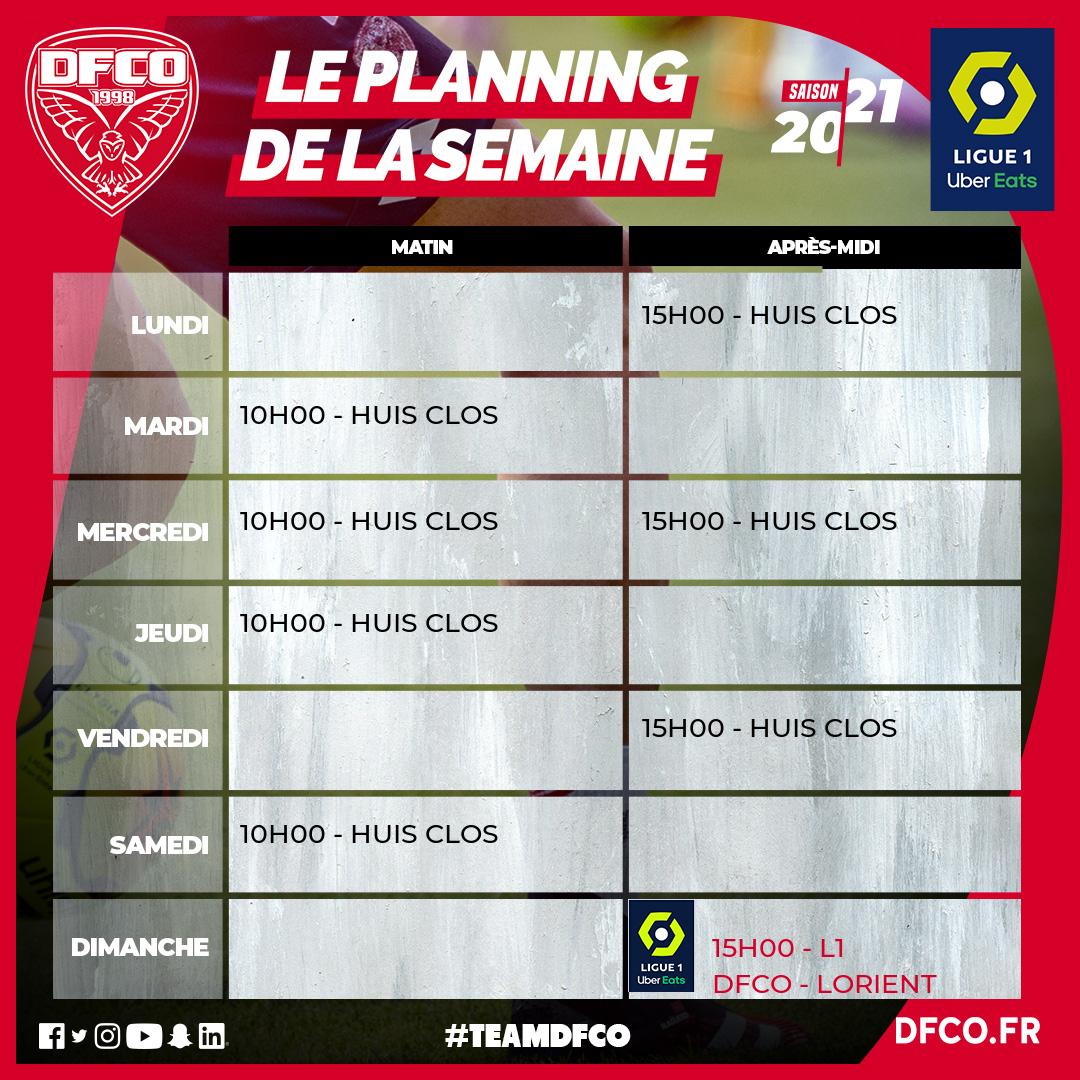 Le groupe professionnel effectuera 7 entraînements collectifs cette semaine avant de défier le FC Lorient dimanche au stade Gaston-Gérard (15h00) pour le compte de la 9e journée de Ligue 1 Uber Eats.