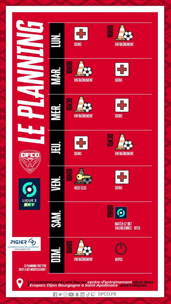 Le planning du groupe pro avant Valenciennes