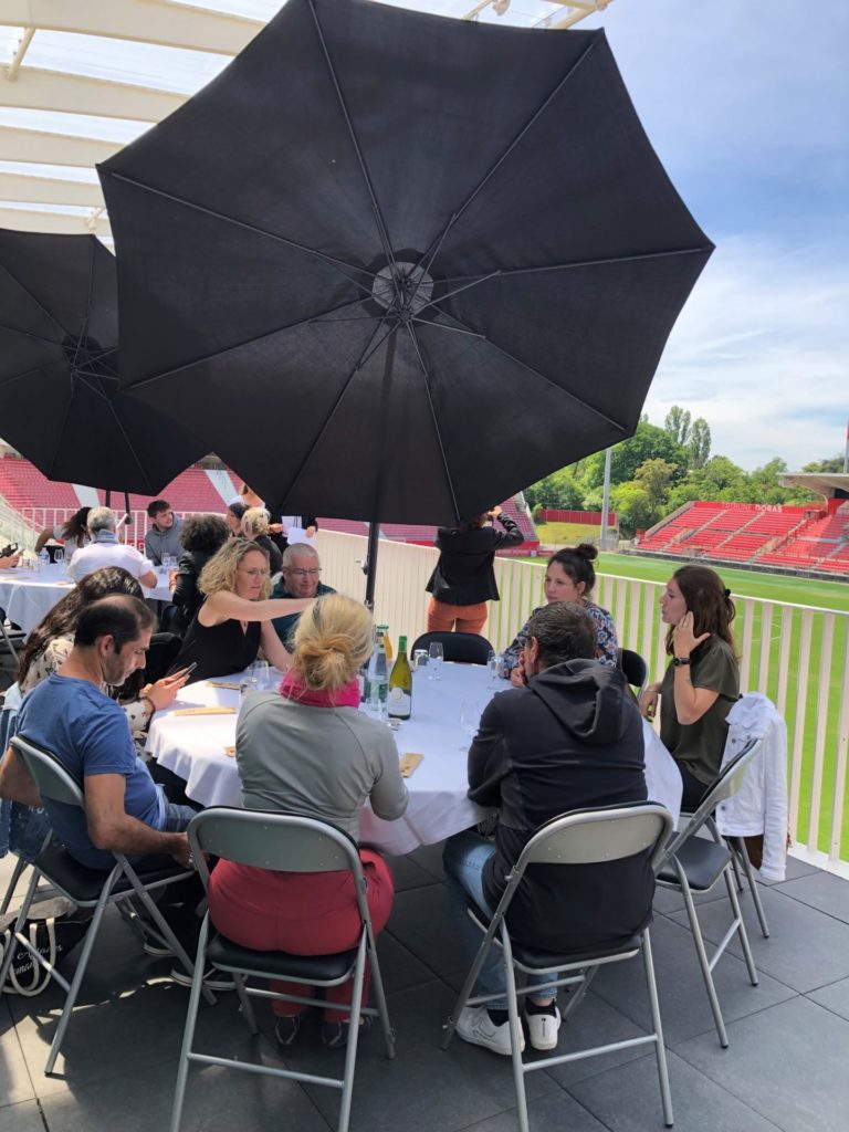 Deuxième séminaire de la semaine pour l’équipe événementielle du DFCO avec l’organisation d’un séminaire résidentiel pour la Croix-Rouge. Accueillie dans notre salon « Club Vin », la journée a été rythmée par plusieurs temps forts. Les participants ont commencé par un petit-déjeuner avant d’entamer leur réunion toute la matinée. La suite est beaucoup plus conviviale avec un repas sur la Terrasse 360 avec vue sur la pelouse du stade. Afin de créer une cohésion d’équipe, les 30 employés de La Croix-Rouge se sont affrontés toute l’après-midi autour d’un escape game mobile, animé par l’agence d’événementielle INNOV’events. La journée s’est terminée par une visite du stade et une photo au bord de la pelouse. Un grand merci à Juliette Wrobel Hermosa, cheffe de projets, d’avoir recommandé notre établissement pour cet événement et merci à Myriam Jeannot, Directrice du Pôle social de la Croix-Rouge, pour la confiance qu’elle nous a accordée.