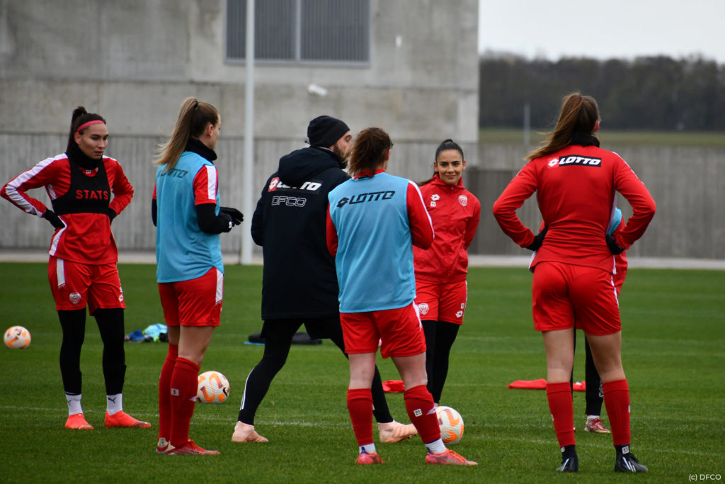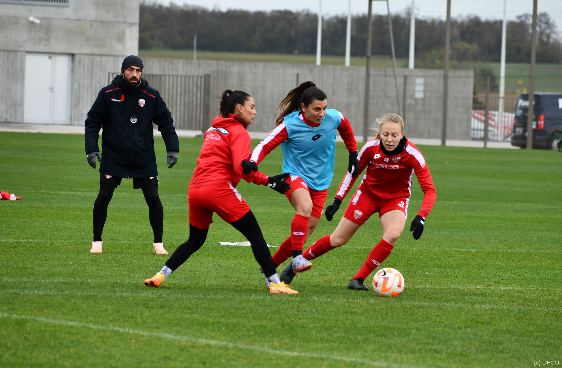 Avant un déplacement important au Havre samedi (14h30), nos Dijonnaises se sont entraînées sur l’aire de jeu du centre habituellement réservée aux garçons du groupe pro.