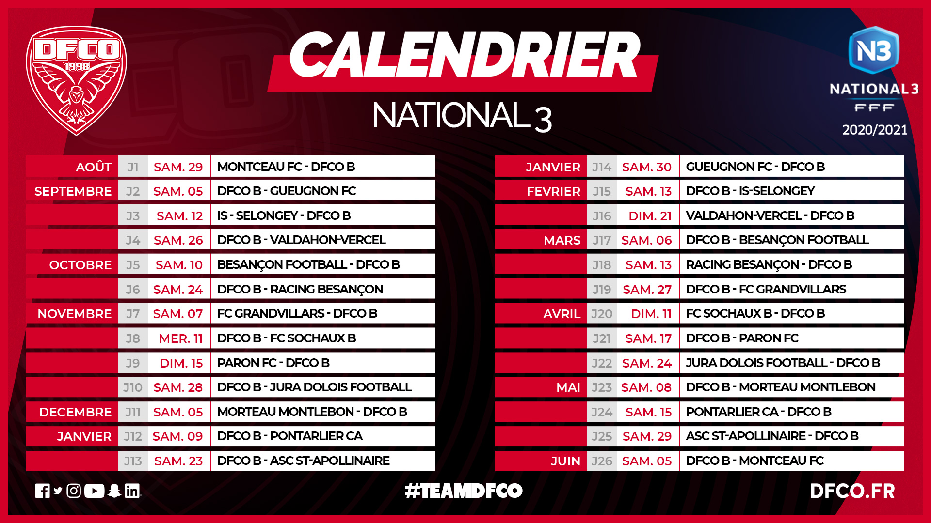 La FFF a dévoilé l'ensemble des calendriers de N3, U19 Nationaux et U17 Nationaux.