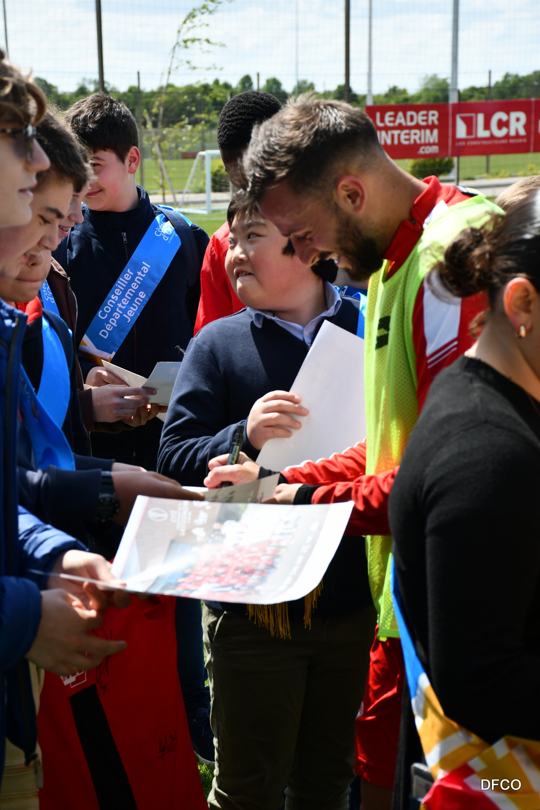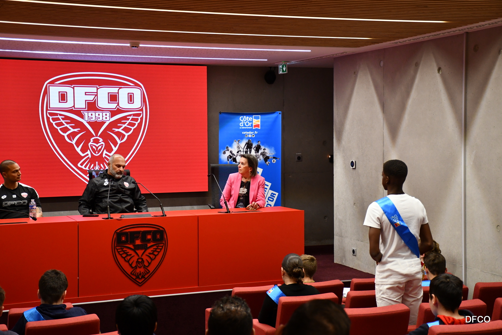 En partenariat avec le Conseil Départemental de la Côte d’Or, une partie des Conseillers Départementaux Juniors ont passé ce mercredi une journée d’immersion au DFCO. Les jeunes collégiens ont pu assister aux entraînements des filles et garçons. Après avoir déjeuné au centre de formation, ils ont pu échanger avec une partie du staff sur les métiers du sport. La journée s’est terminée par la visite du centre d’entraînement.