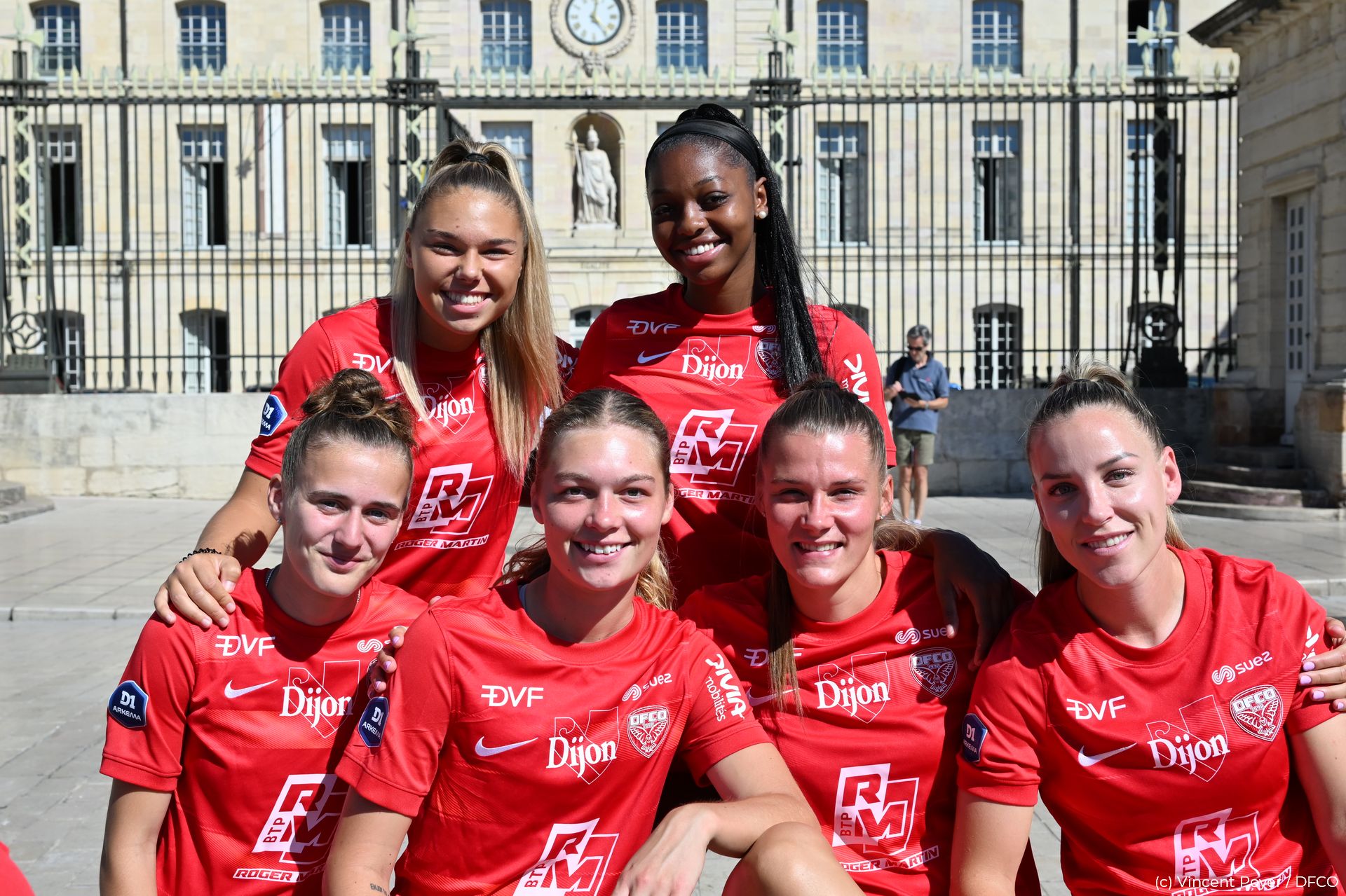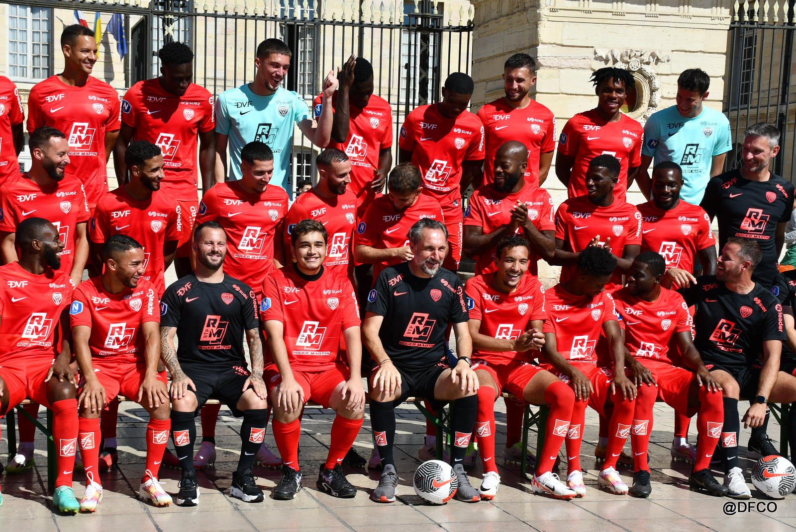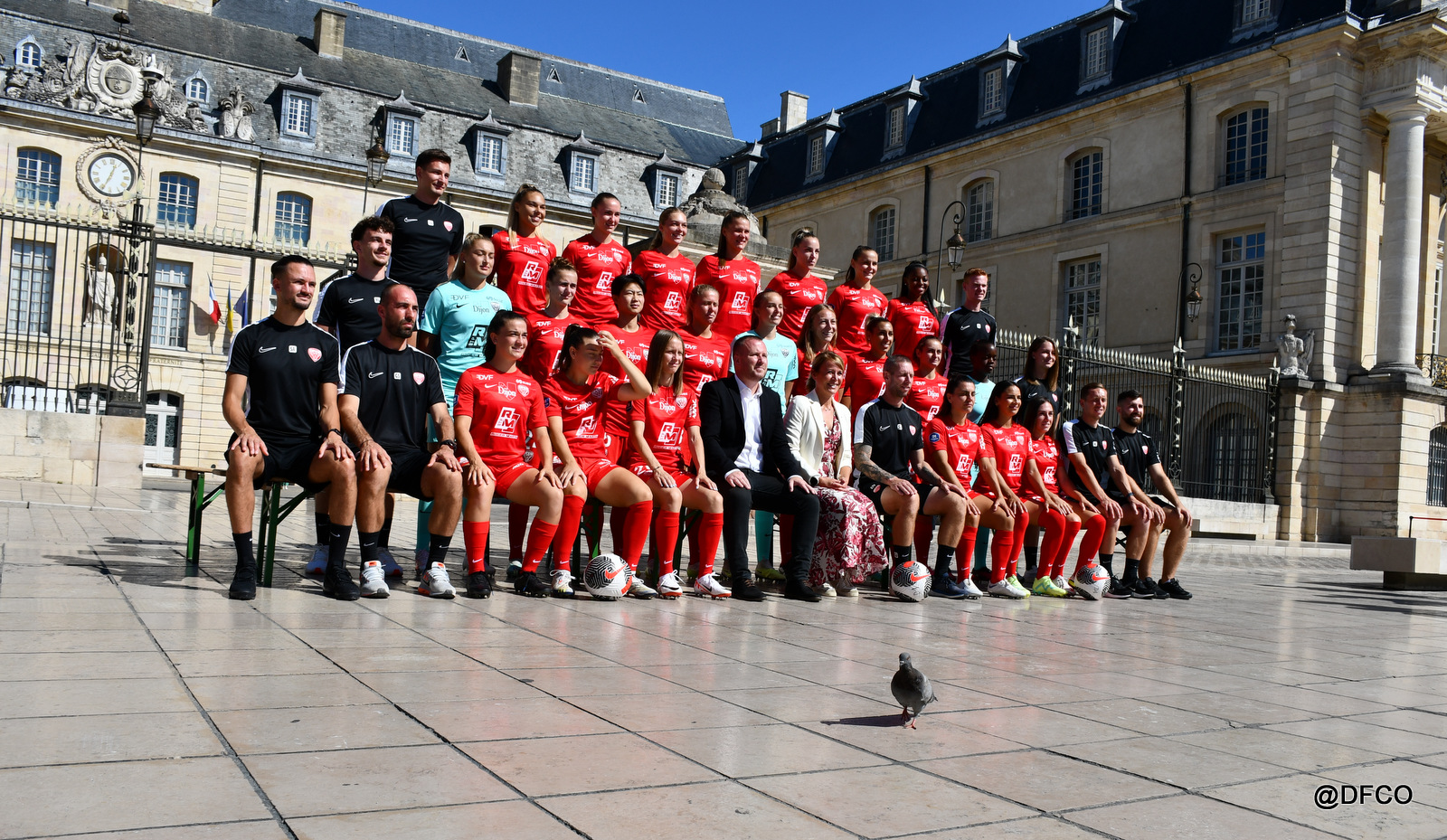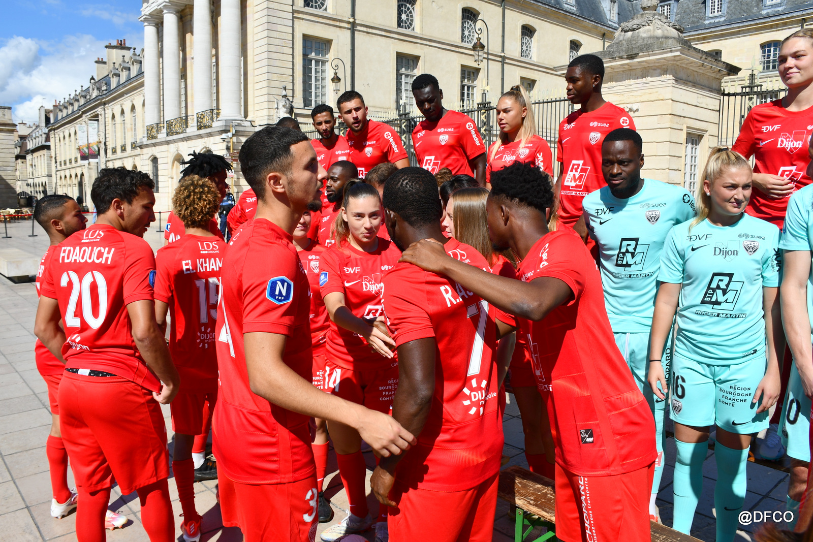 Pour la saison 2023/2024, la photo officielle a eu lieu dans un lieu prestigieux de Dijon : sur la superbe place de la Libération, avec l’Hôtel de Ville en décor ! Le beau temps était en plus de la partie pour faire briller les sourires de nos joueurs et joueuses ! Photos individuelles, photos par équipe, photos mixtes, avec nos fidèles partenaires et associations, ou encore avec trois heureux supporters tirés au sort pour vivre un moment unique au centre des deux effectifs !
