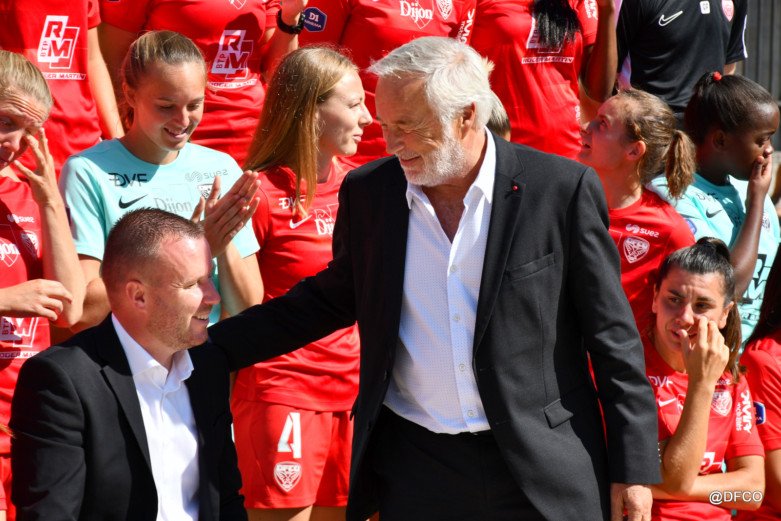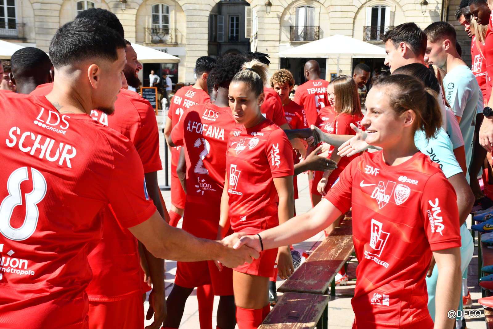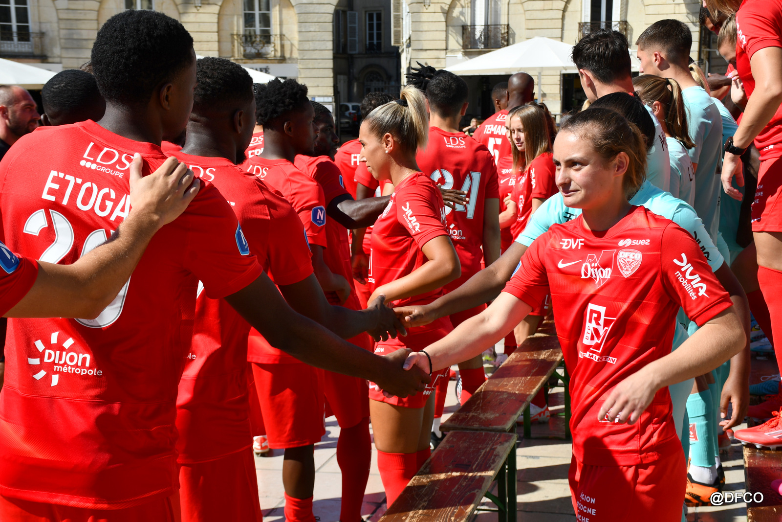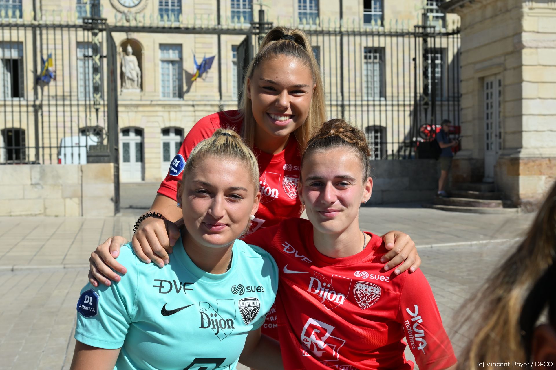 Pour la saison 2023/2024, la photo officielle a eu lieu dans un lieu prestigieux de Dijon : sur la superbe place de la Libération, avec l’Hôtel de Ville en décor ! Le beau temps était en plus de la partie pour faire briller les sourires de nos joueurs et joueuses ! Photos individuelles, photos par équipe, photos mixtes, avec nos fidèles partenaires et associations, ou encore avec trois heureux supporters tirés au sort pour vivre un moment unique au centre des deux effectifs !