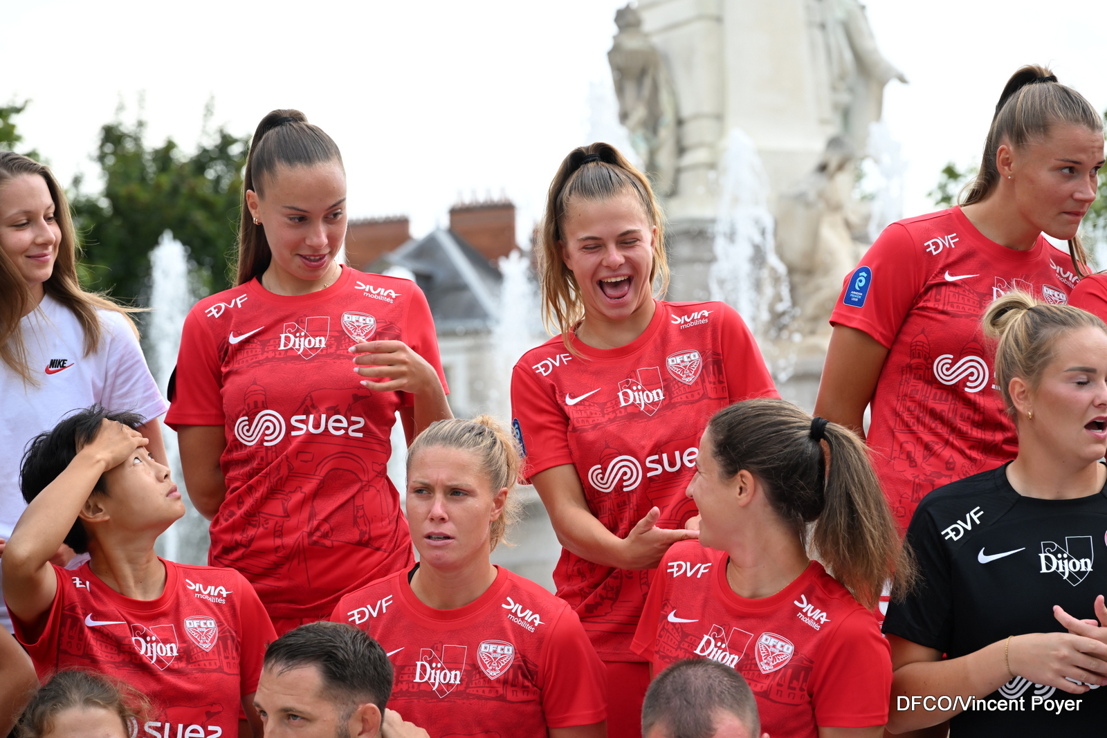 Pour la saison 2024/2025, la photo officielle a eu lieu dans un lieu bien connu des Dijonnais : la place de la République. Les deux équipes premières se sont retrouvées pour poser l’une après l’autre, puis pour une photo mixte, avec nos fidèles partenaires privés, institutionnels et nos associations. Six heureux supporters tirés au sort pour vivre ce moment phare du début de saison ont pu également se placer au cœur des photos.
