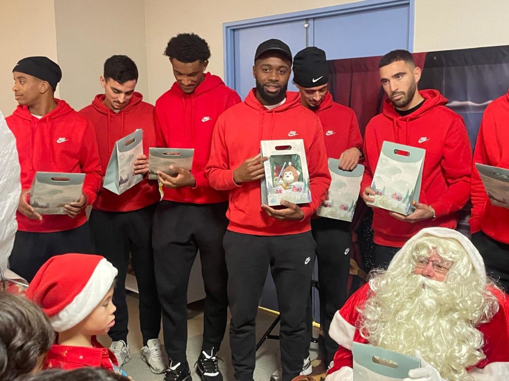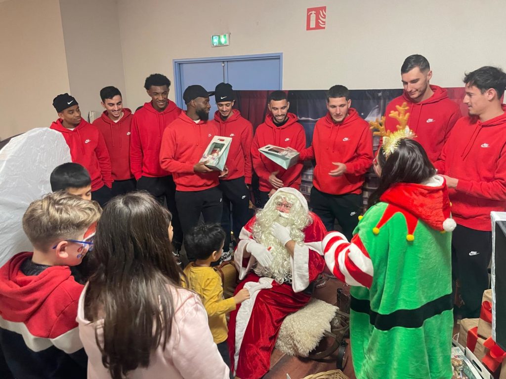 Après avoir accueilli les enfants, les joueurs ont assisté au spectacle d’une heure avant d’aider le Père Noël dans la distribution des cadeaux. Ils ont également offert trois grand jeux muraux qui seront installés dans le couloir de l’association.