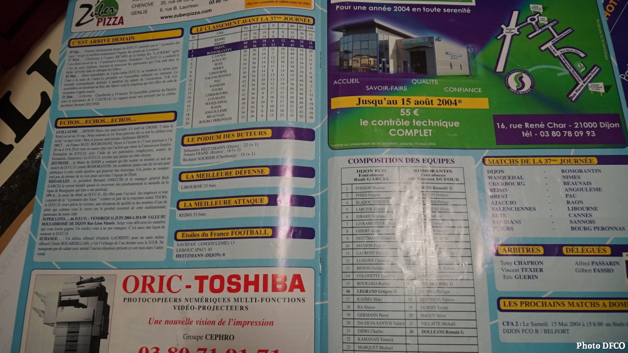 Le programme de match : « Pour cette année-là, j »ai sélectionné le programme de match de la rencontre DFCO – Romorantin. Il n »y a pas grand chose à dire. C »était juste magique »