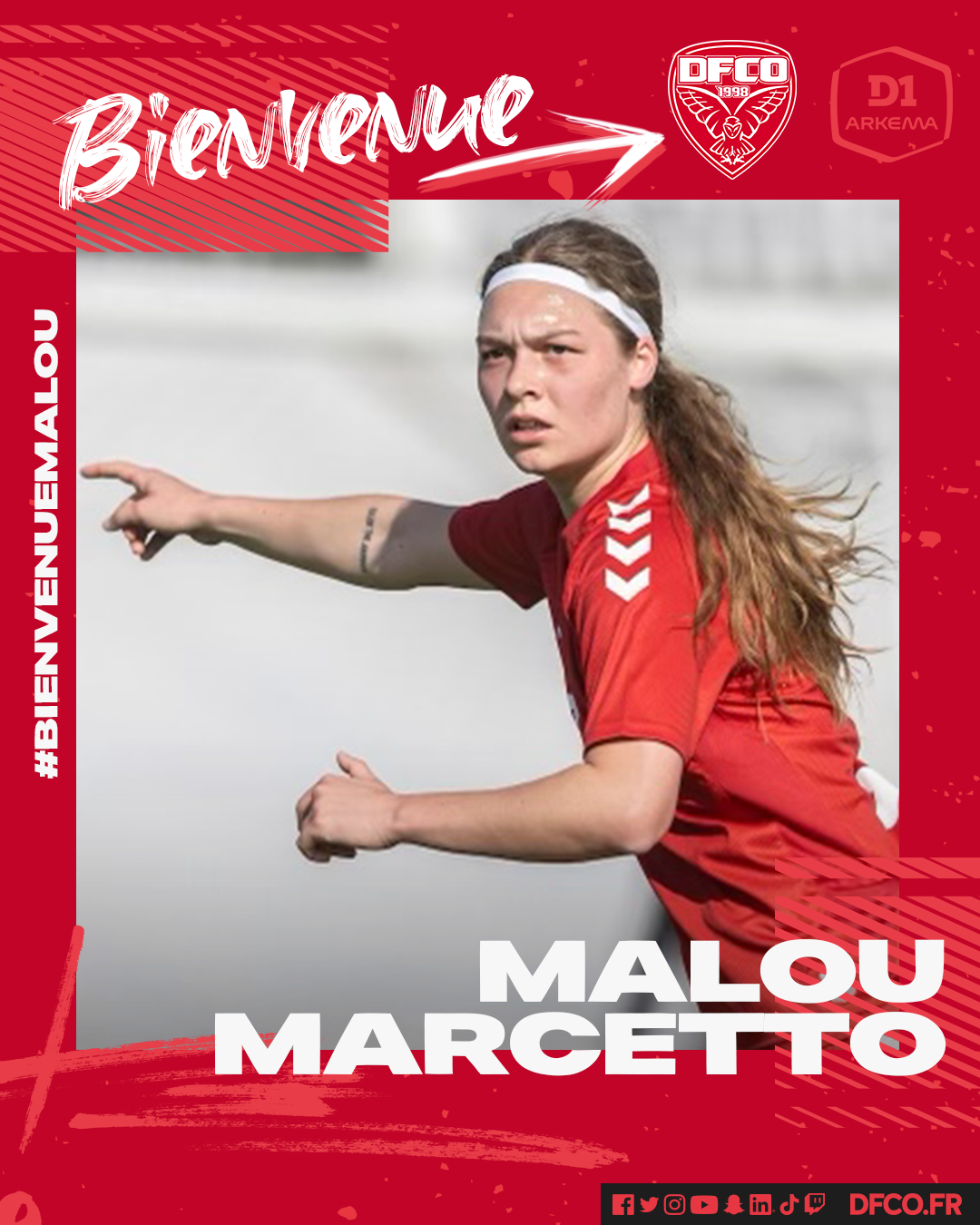 Le DFCO a le plaisir d’officialiser la signature de Malou Marcetto pour les deux prochaines saisons. Cette jeune milieu de terrain, de 20 ans, arrive en provenance du club danois de Brondby IF.