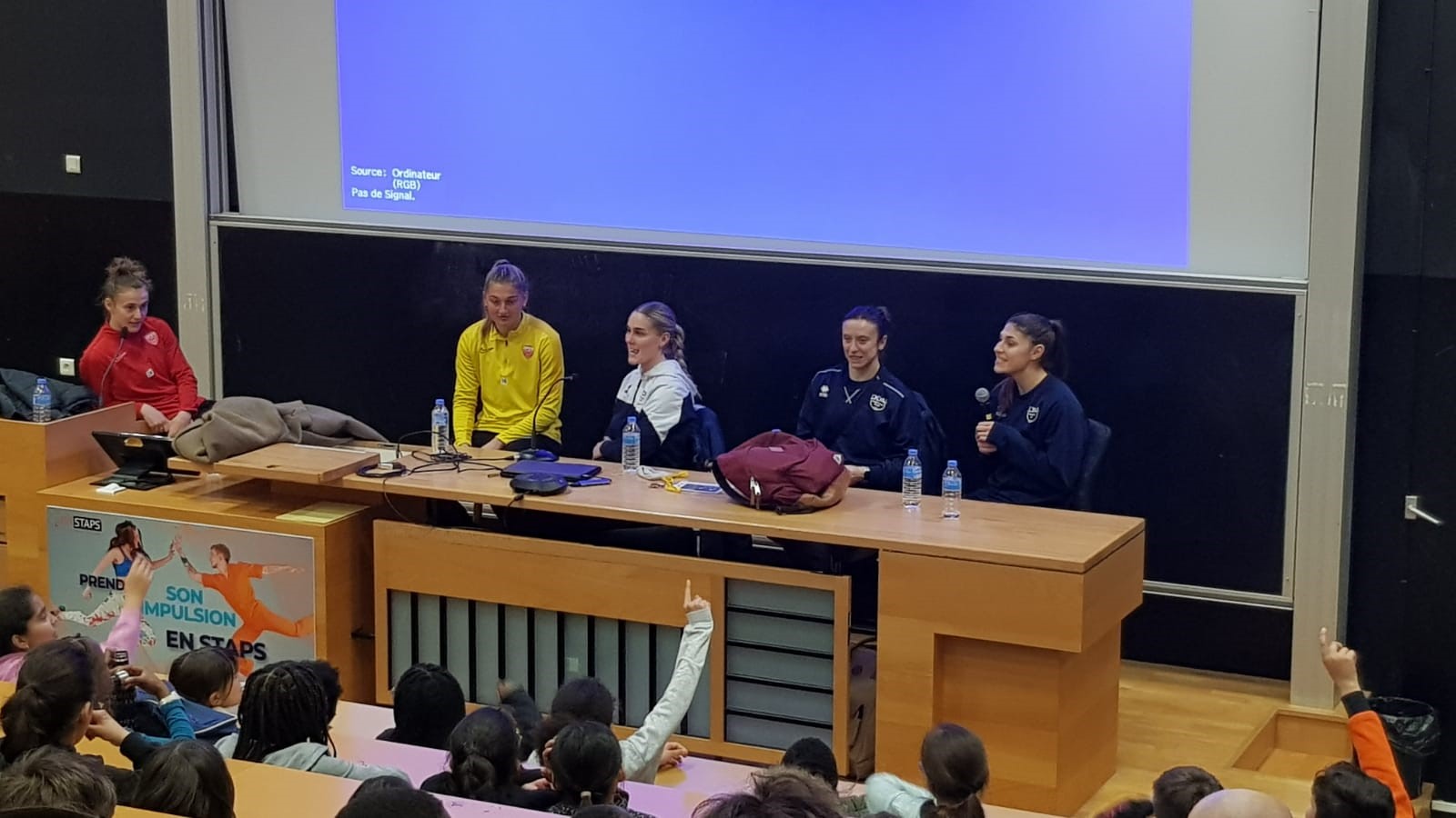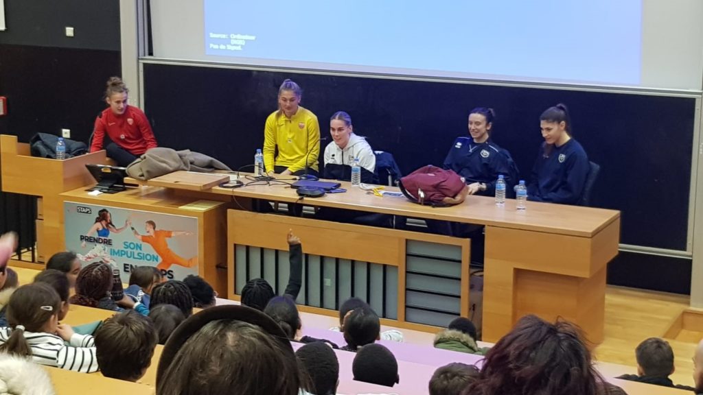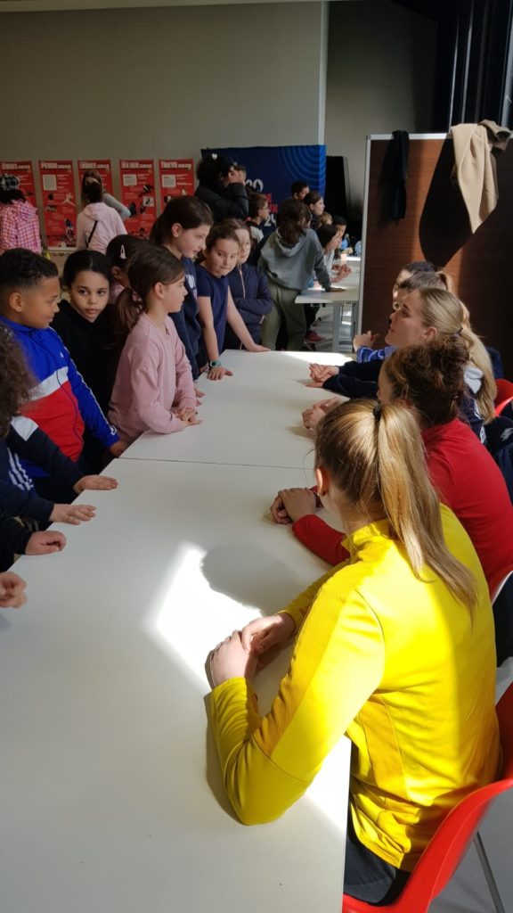 Dans ce cadre, notre gardienne Alice Pinguet et notre défenseur Margaux Vairon se sont rendues sur place pour échanger avec les enfants. Elles y ont retrouvé également Ilona Di Rocco, Stine Norklit Lonborg et Rosario Urban handballeuses de la JDA.