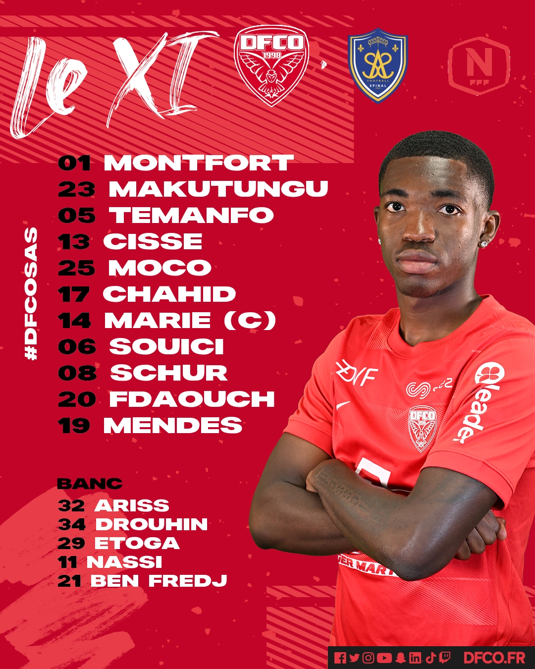 Le DFCO (14e) reçoit ce soir la lanterne rouge du championnat. Épinal, qui n’a pas encore débloqué son compteur victoires, totalise 4 points. Les Spinaliens ont marqué 6 fois et encaissé 14 buts.