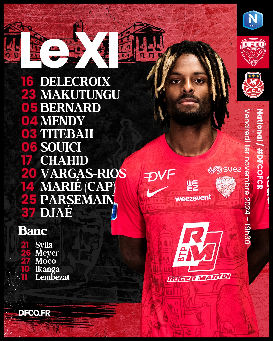 Jordan Marié est capitaine. Le duo d’attaque sera composé d’Alexandre Parsemain et Abdelmajid Djaé.#DFCOFCR pic.twitter.com/wDc89Zly3l