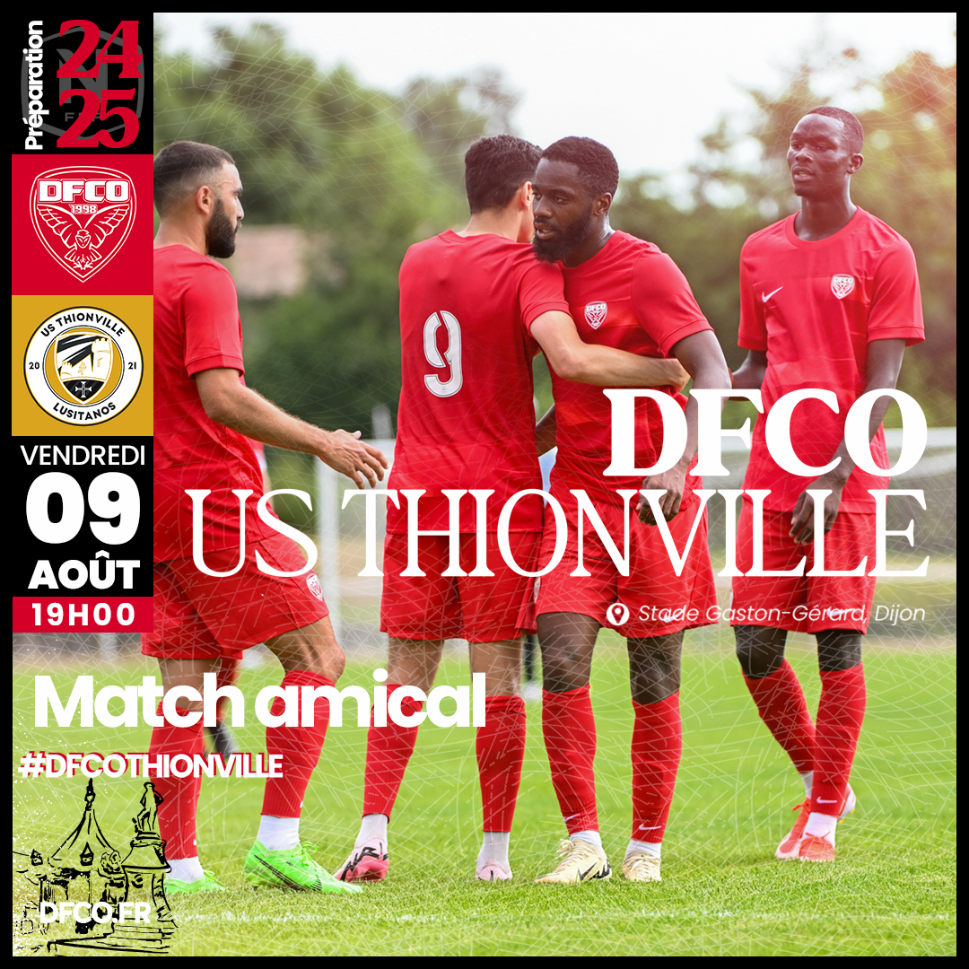 Bonne nouvelle pour les supporters dijonnais, les Rouges affronteront Thionville (N2) à Gaston Gérard le vendredi 9 août à 19h. Une occasion de faire connaissance avec votre équipe version 2024/2025.