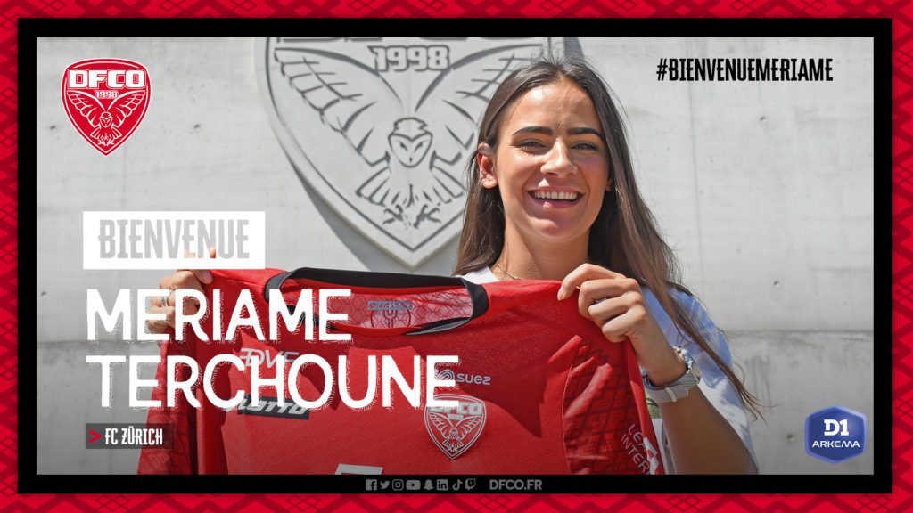 Le DFCO poursuit son recrutement en D1 Arkema avec l’arrivée de Meriame Terchoun (1m62), internationale suisse âgée de 26 ans. Joueuse du FC Zürich depuis 2012, avec un rapide passage au FC Bâle, elle quitte le championnat suisse pour la première fois de sa carrière. Avec Zürich, elle a participé à la conquête de 15 titres nationaux, que ce soit en championnat ou en Coupe de Suisse, et joué en Ligue des Champions.