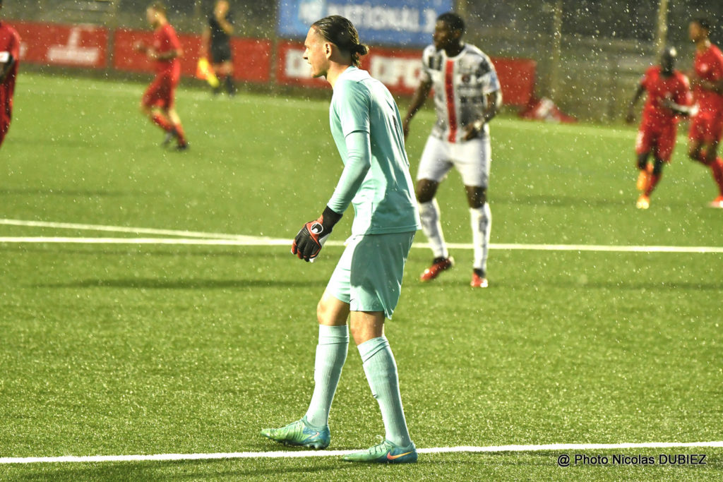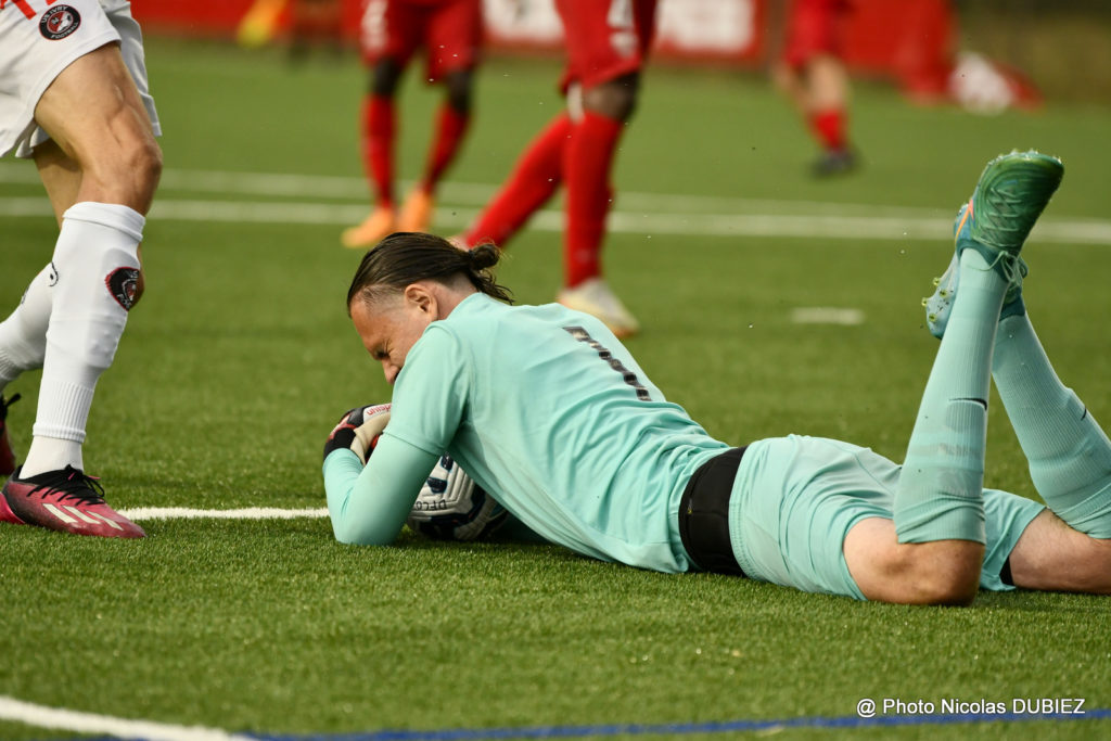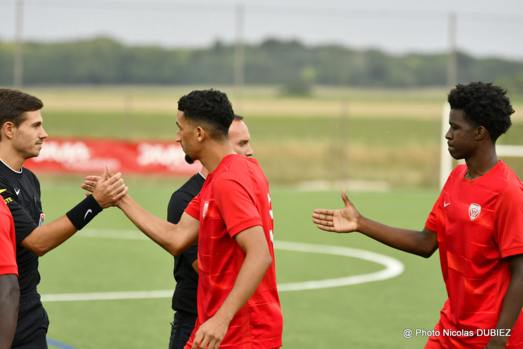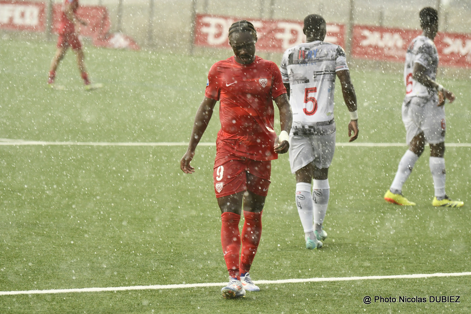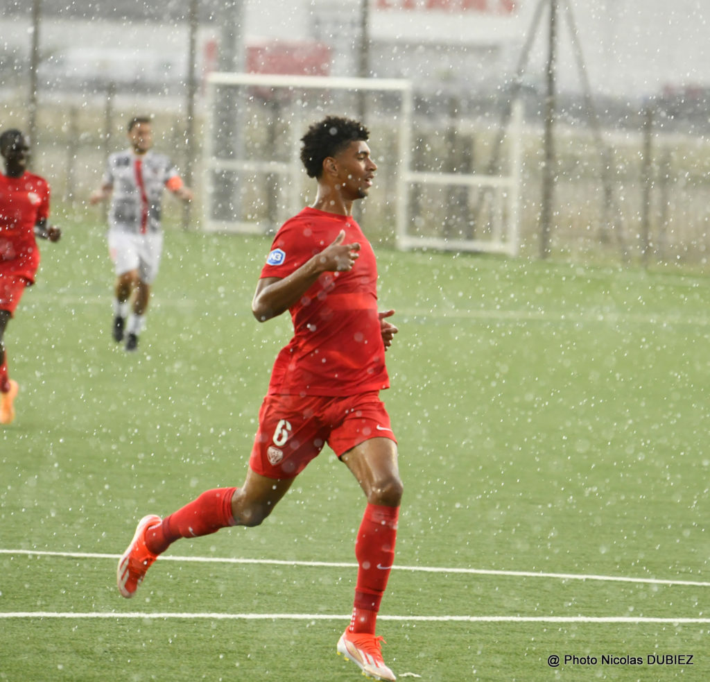 Les Rouges ont pris le match par le bon bout, avec une entame positive, des intentions et de l’énergie. C’est récompensé par l’obtention d’un penalty obtenu par Kelvin Winstersheim à l’issue d’un joli mouvement collectif, et conclu avec sang-froid par Mamadou Kébé (1-0, 9e). La suite de la première sera solide avec un DFCO qui a su imposer son style de jeu. Le tout sous une météo qui a parfois rendu les débats difficiles, un orage s’étant abattu sur le DFCO Park.