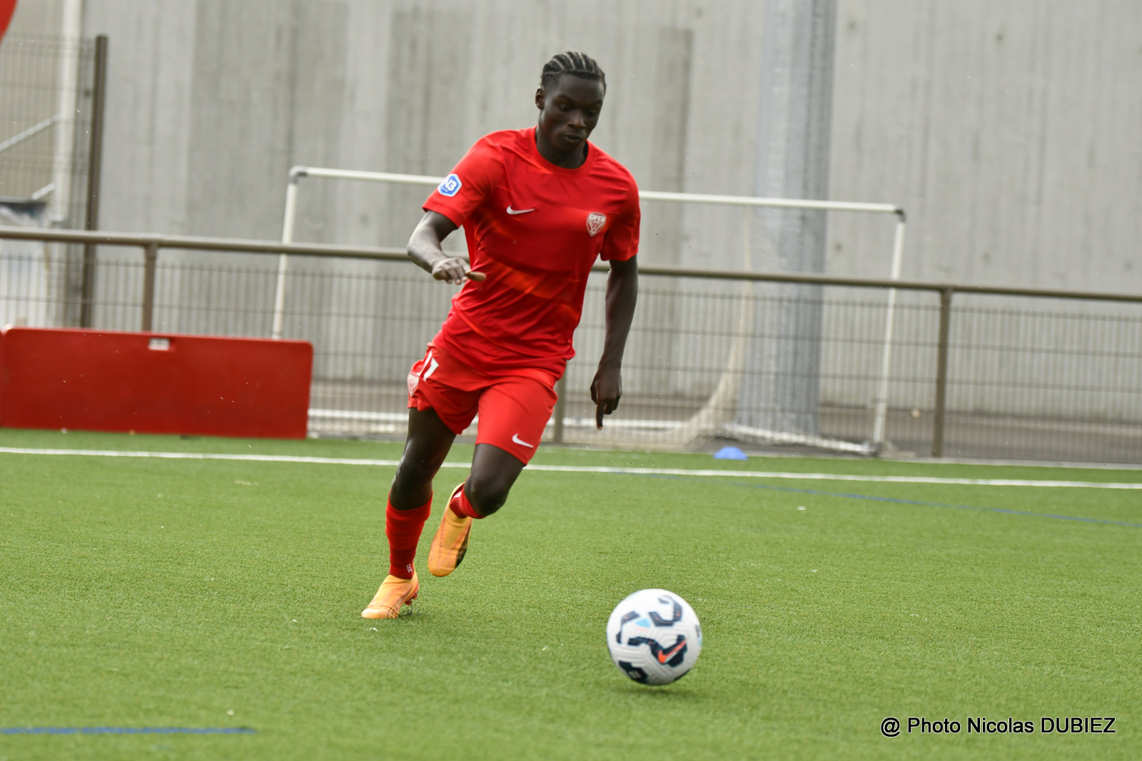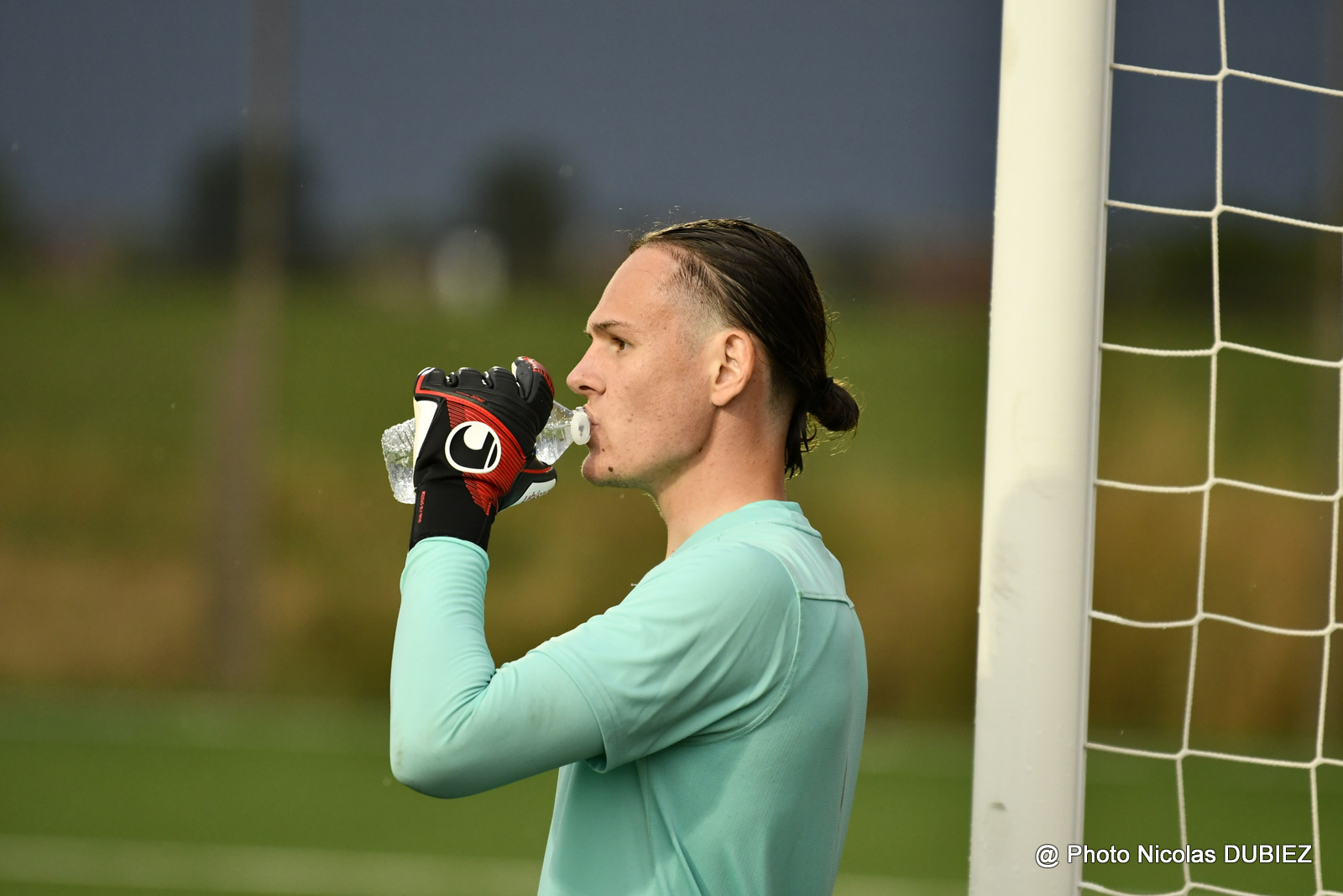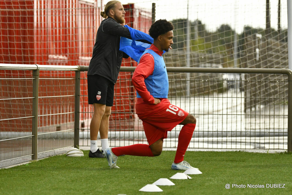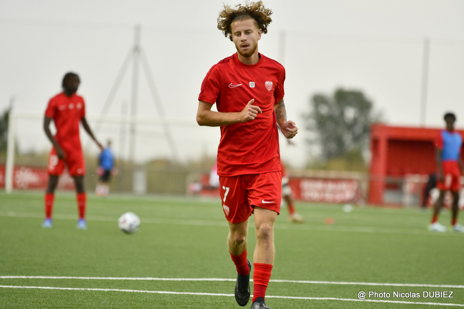 Les Rouges ont pris le match par le bon bout, avec une entame positive, des intentions et de l’énergie. C’est récompensé par l’obtention d’un penalty obtenu par Kelvin Winstersheim à l’issue d’un joli mouvement collectif, et conclu avec sang-froid par Mamadou Kébé (1-0, 9e). La suite de la première sera solide avec un DFCO qui a su imposer son style de jeu. Le tout sous une météo qui a parfois rendu les débats difficiles, un orage s’étant abattu sur le DFCO Park.