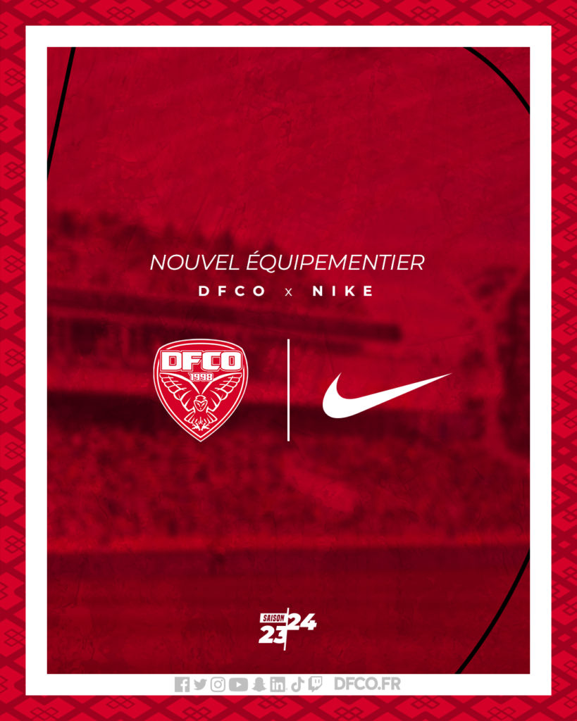 Après sept saisons avec la marque italienne Lotto, le DFCO a le plaisir d’annoncer avoir trouvé un accord de partenariat avec Nike. La prestigieuse marque américaine devient donc l’équipementier officiel du DFCO à partir du 1er juillet 2023 et ce pour les trois prochaines saisons.