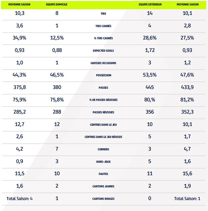 - Dominateur sur l'ensemble de la partie, le DFCO a frappé 14 fois dans cette partie et totalise 53,5 % de possession de balle.