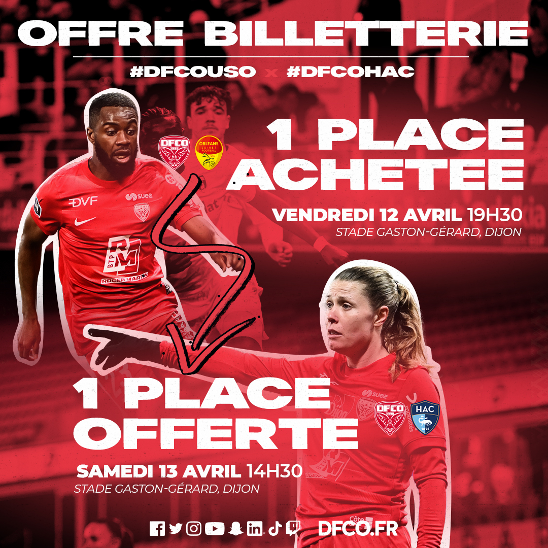 Offre Billetterie DFCO : 1 place achetée = 2 matchs !
