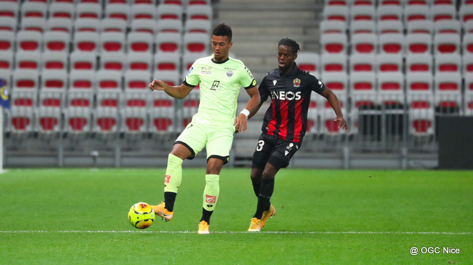 A Nice, stade Allianz Riviera, le DFCO bat l’OGC Nice (3-1).