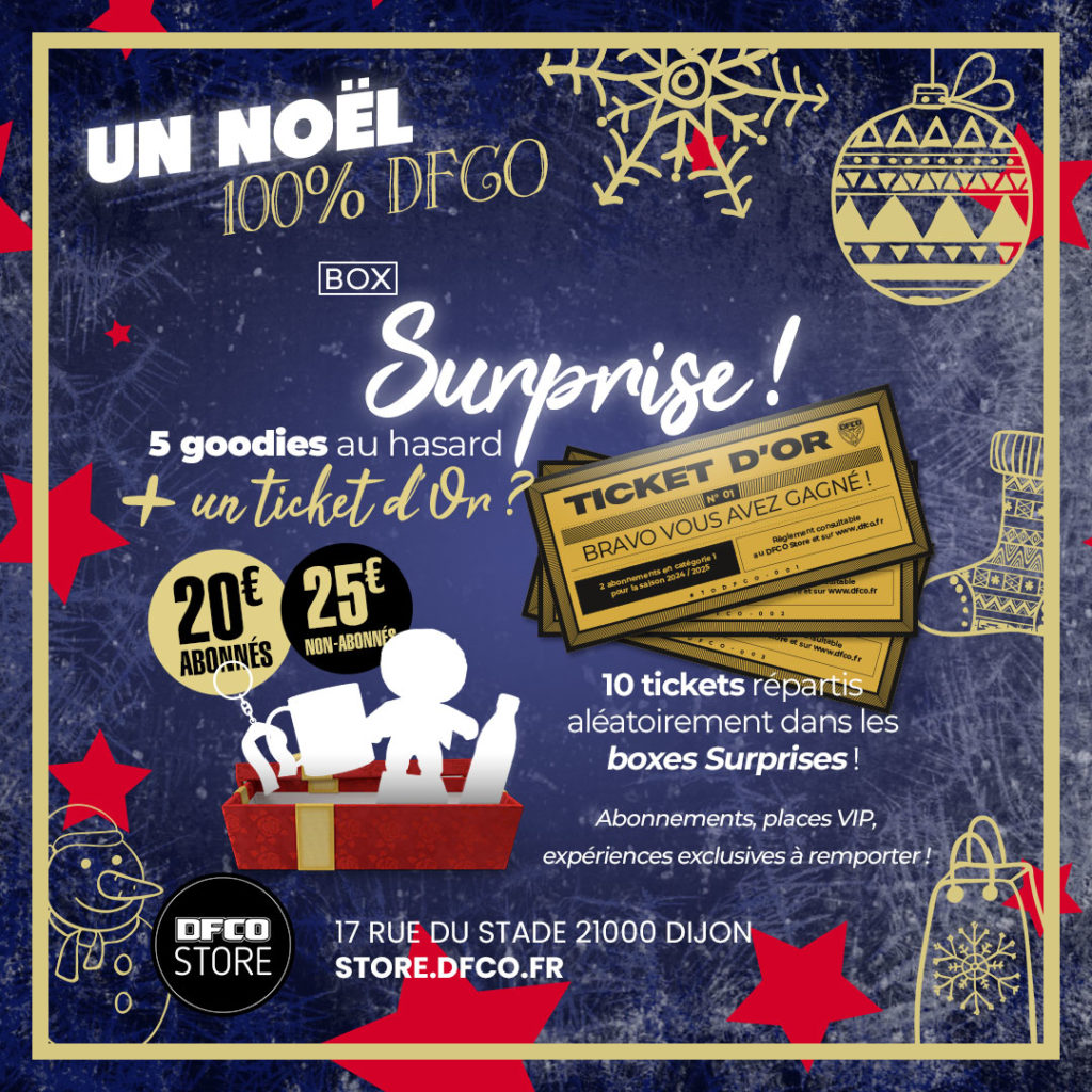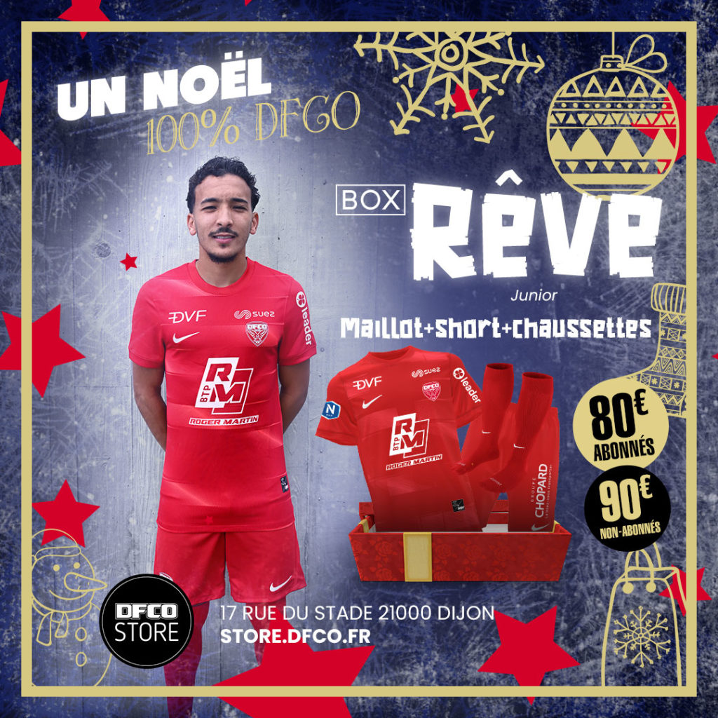 Vous souhaitez offrir un cadeau à un(e) grand(e) fan du DFCO ? Vous viserez juste avec cette box contenant les incontournables (maillot + écharpe + porte-clés) !