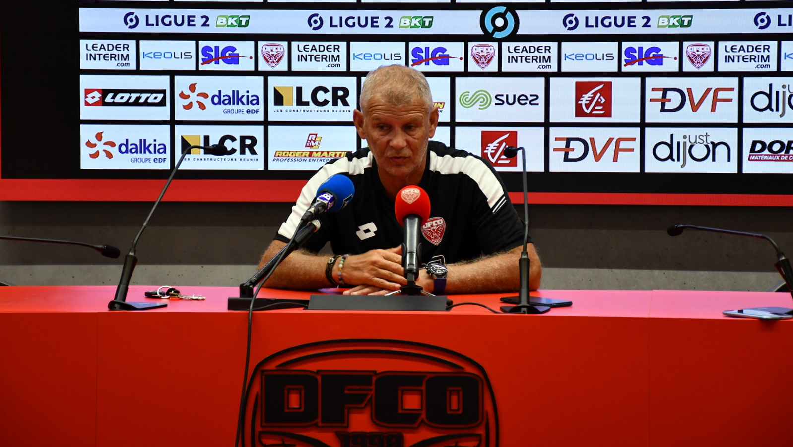 « La descente, il faut la digérer, l"analyser et ensuite il faut repartir avec de nouveaux objectifs. On a la chance d"avoir un outil supplémentaire, avec le centre d"entraînement, qui doit nous permettre d"atteindre ces objectifs. Cet outil, il doit nous amener à avoir encore plus d"exigence au quotidien. Pour le moment, je suis satisfait de ce que j"ai vu et de l"investissement. Mais la vérité, ce sera samedi. Samedi, je veux des joueurs qui aient l"ambition de gagner le match, l"attitude et le comportement pour ça. Je veux voir une équipe jouer ensemble, courir ensemble, défendre et attaquer ensemble. Se tromper ensemble, mais jouer ! Ne pas jouer petits bras et faire en sorte d"aller chercher le match. C"est comme ça que la réussite va tourner. Si on attend que ça vienne comme ça, on sera en difficulté. Il faut regarder devant et avoir l"attitude qu"il faut pour aller chercher les choses. »