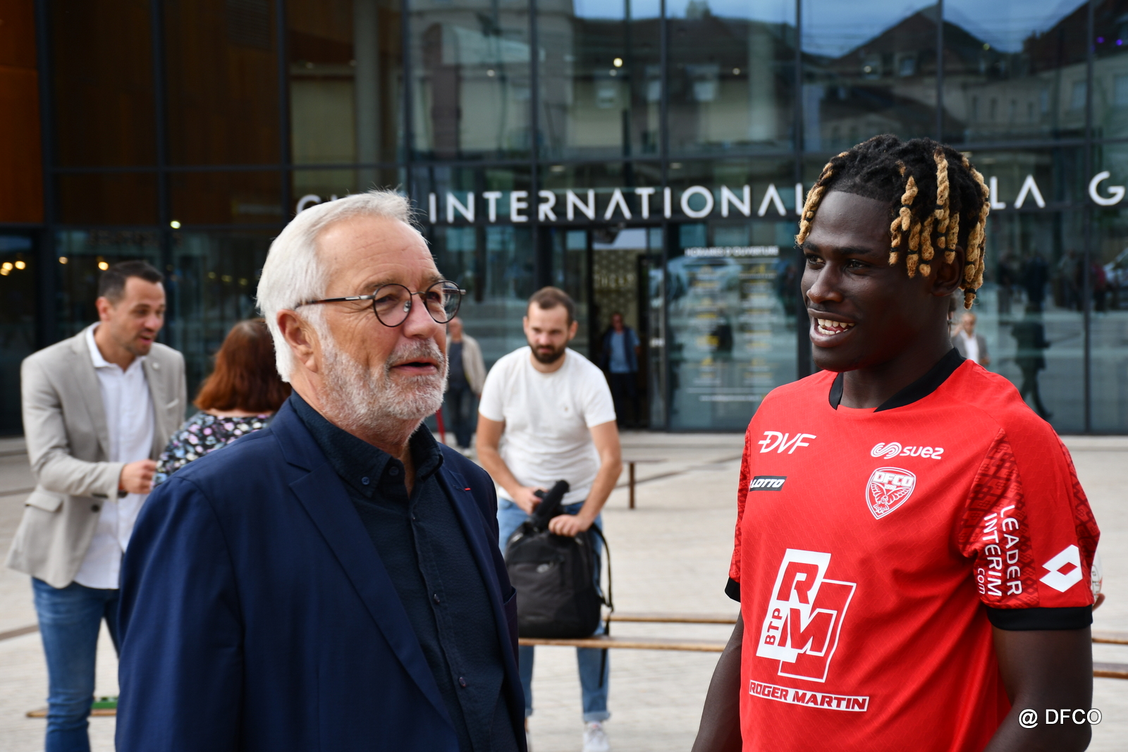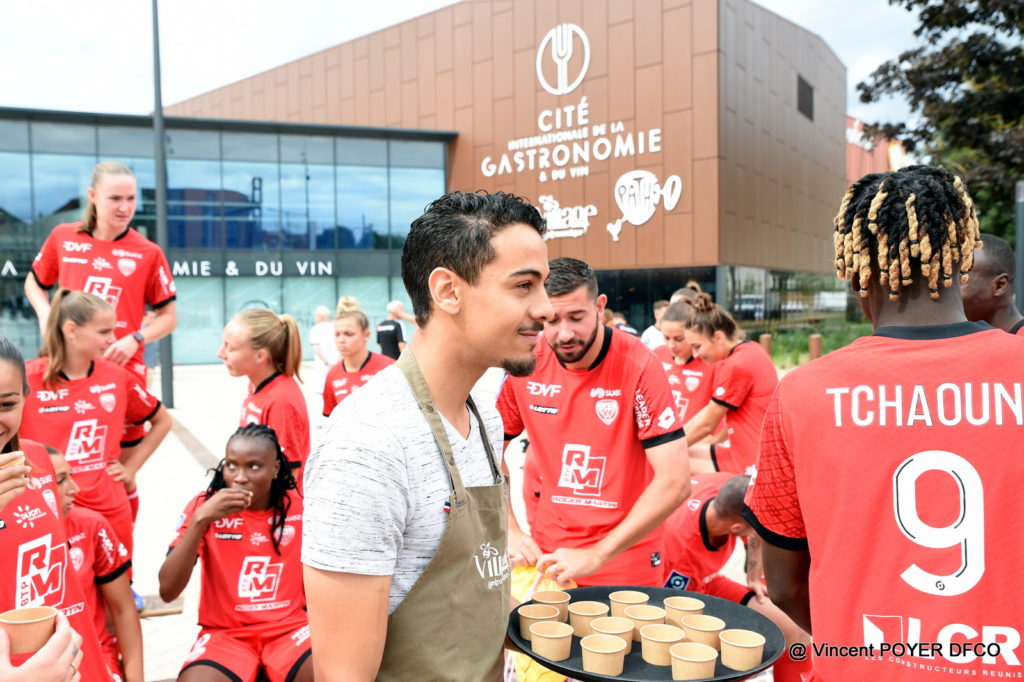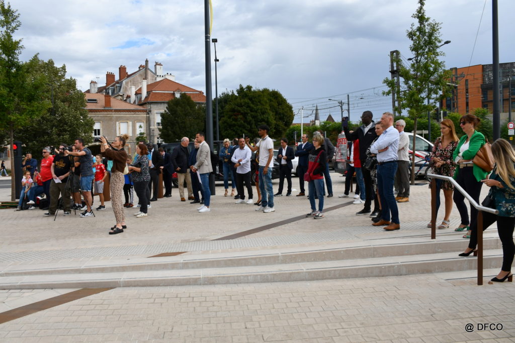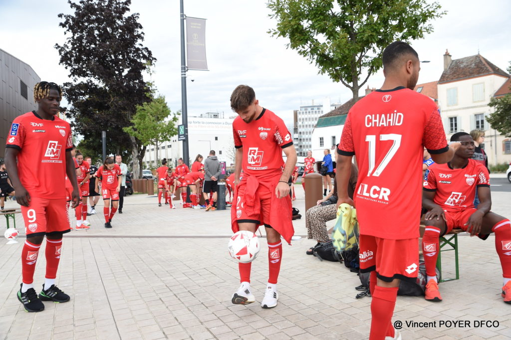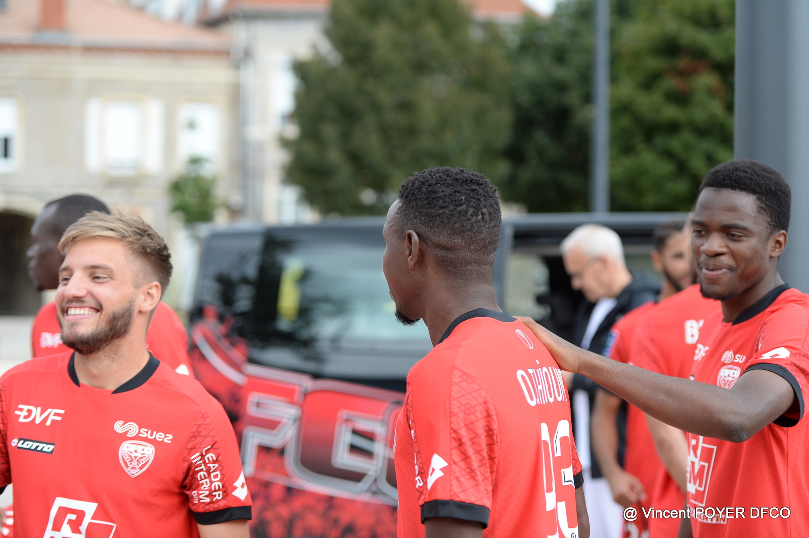 Sur le parvis, les photos se sont enchaînées avec, au centre, le Président Olivier Delcourt, Monsieur le Maire François Rebsamen, les partenaires majeurs du DFCO, ainsi que les gagnants de notre jeu concours.