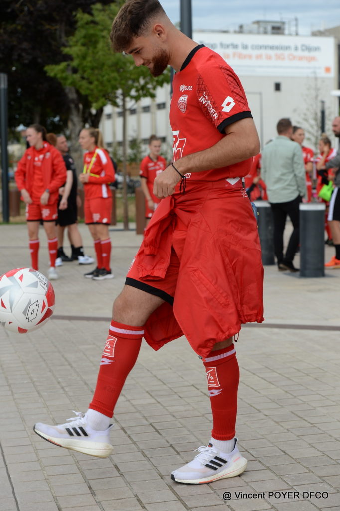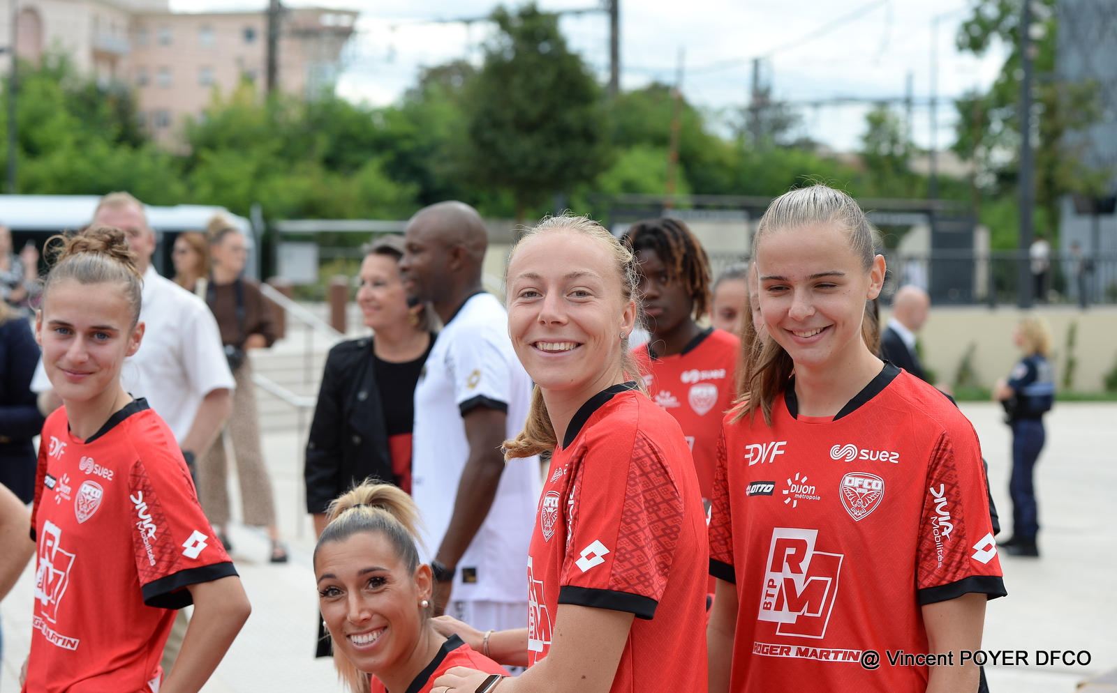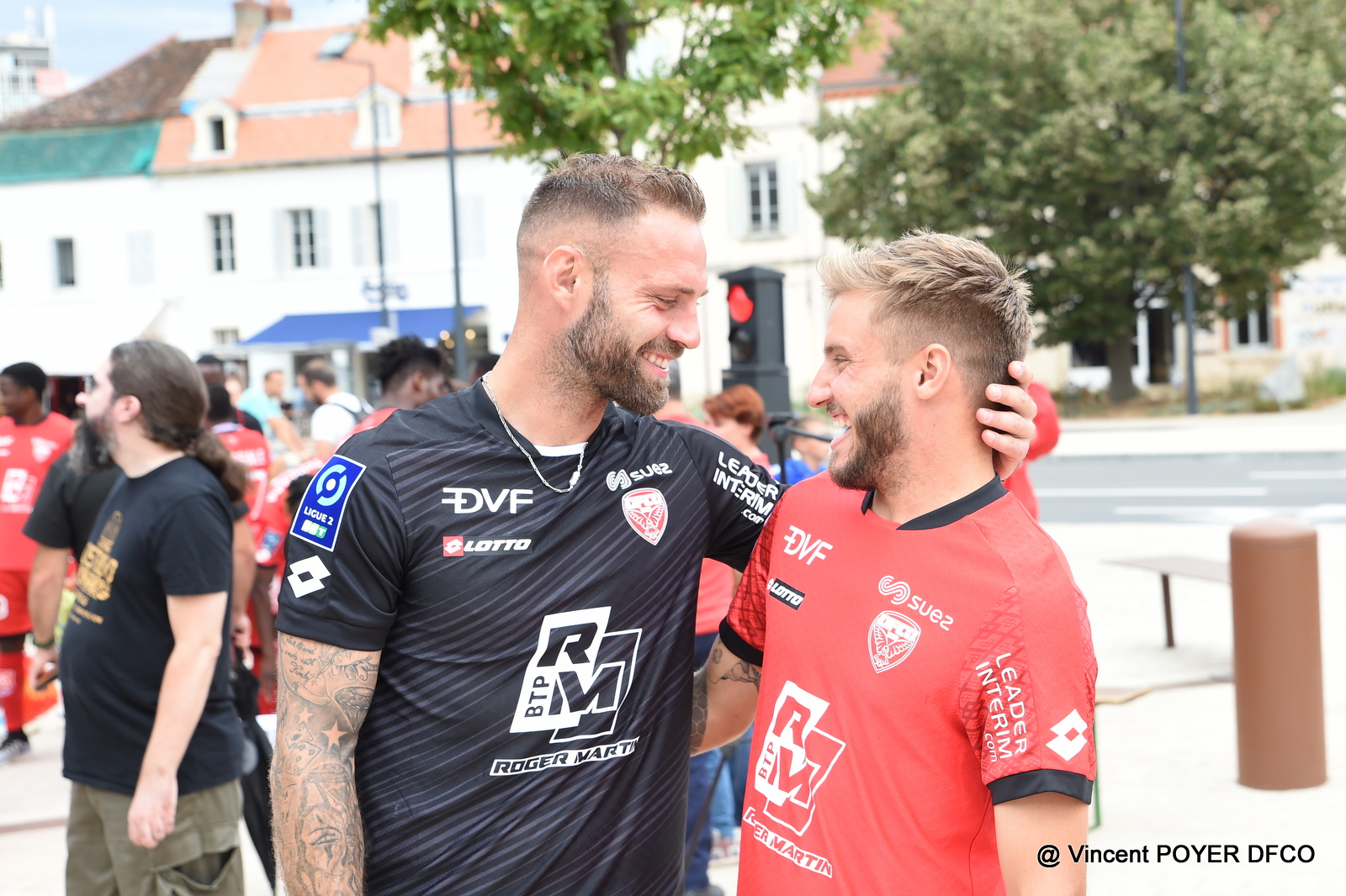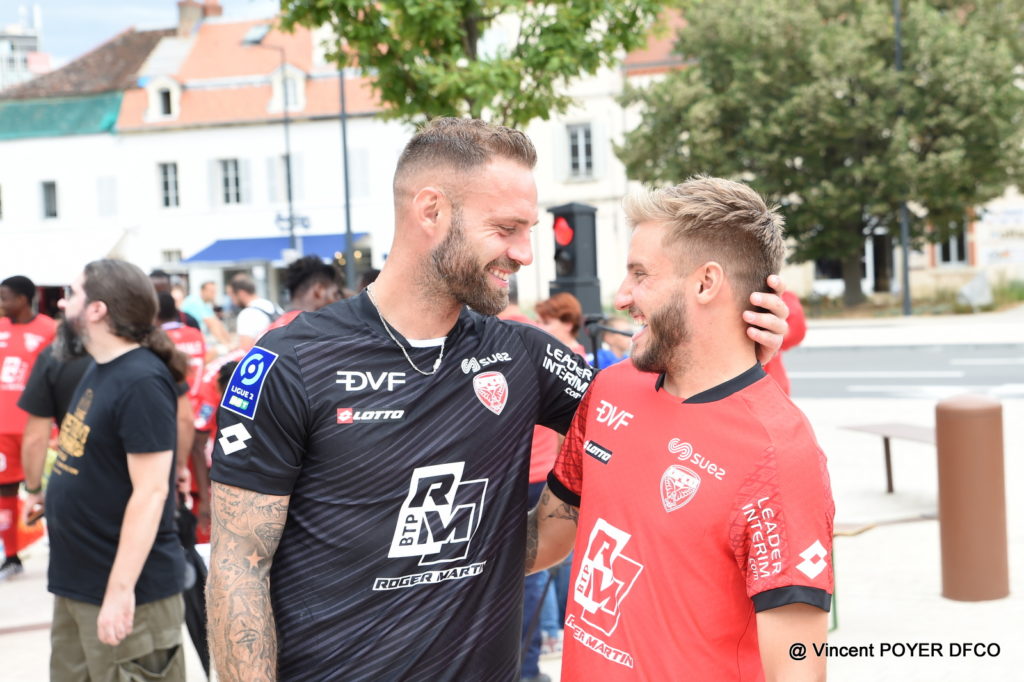 Sur le parvis, les photos se sont enchaînées avec, au centre, le Président Olivier Delcourt, Monsieur le Maire François Rebsamen, les partenaires majeurs du DFCO, ainsi que les gagnants de notre jeu concours.