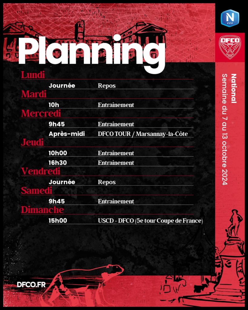 Petite parenthèse Coupe de France dans le calendrier de National, avec au programme le 5e tour de Coupe de France contre l’US Cheminots Dijonnais, dimanche à 15h00. Retrouvez le planning de la semaine.