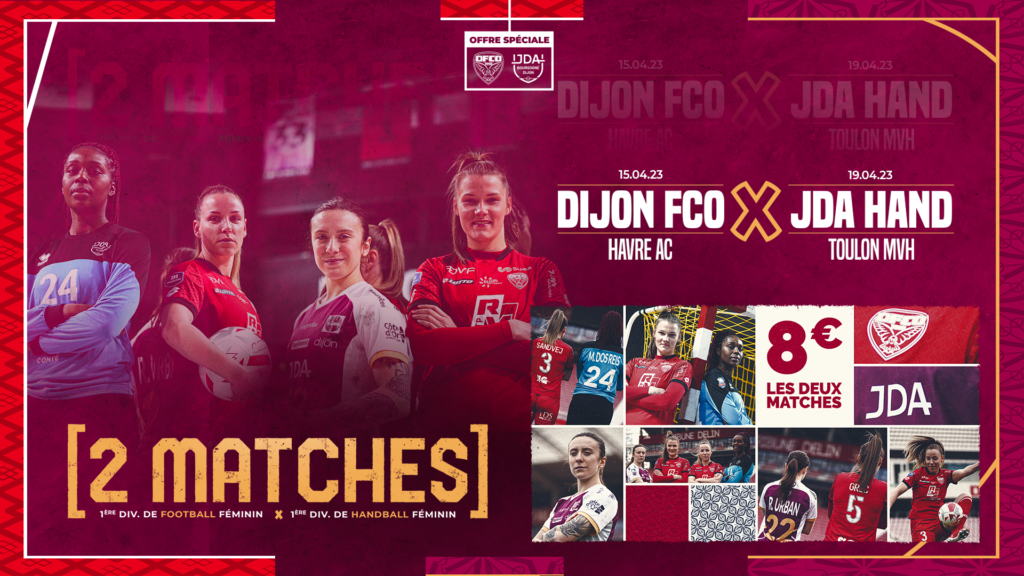 Dijonnais, prêts à supporter les équipes de votre ville ? La JDA Dijon Handball et la section féminine du DFCO vous proposent deux rendez-vous sportifs pour seulement 8 euros !
