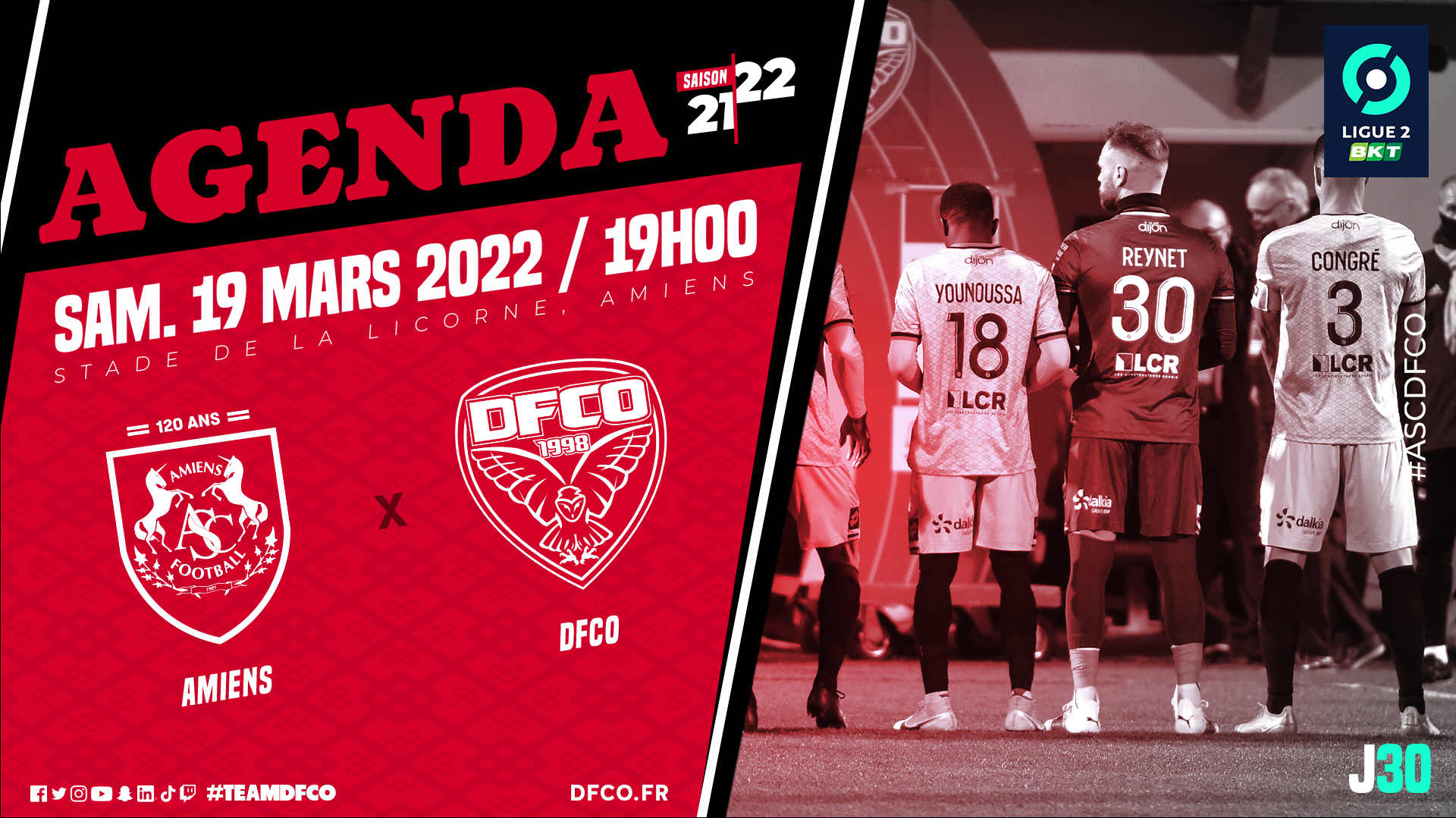 La LFP a annoncé ce jour la programmation de la 30e journée de Ligue 2 BKT. Le DFCO se déplacera à Amiens le samedi 19 mars à 19h00.