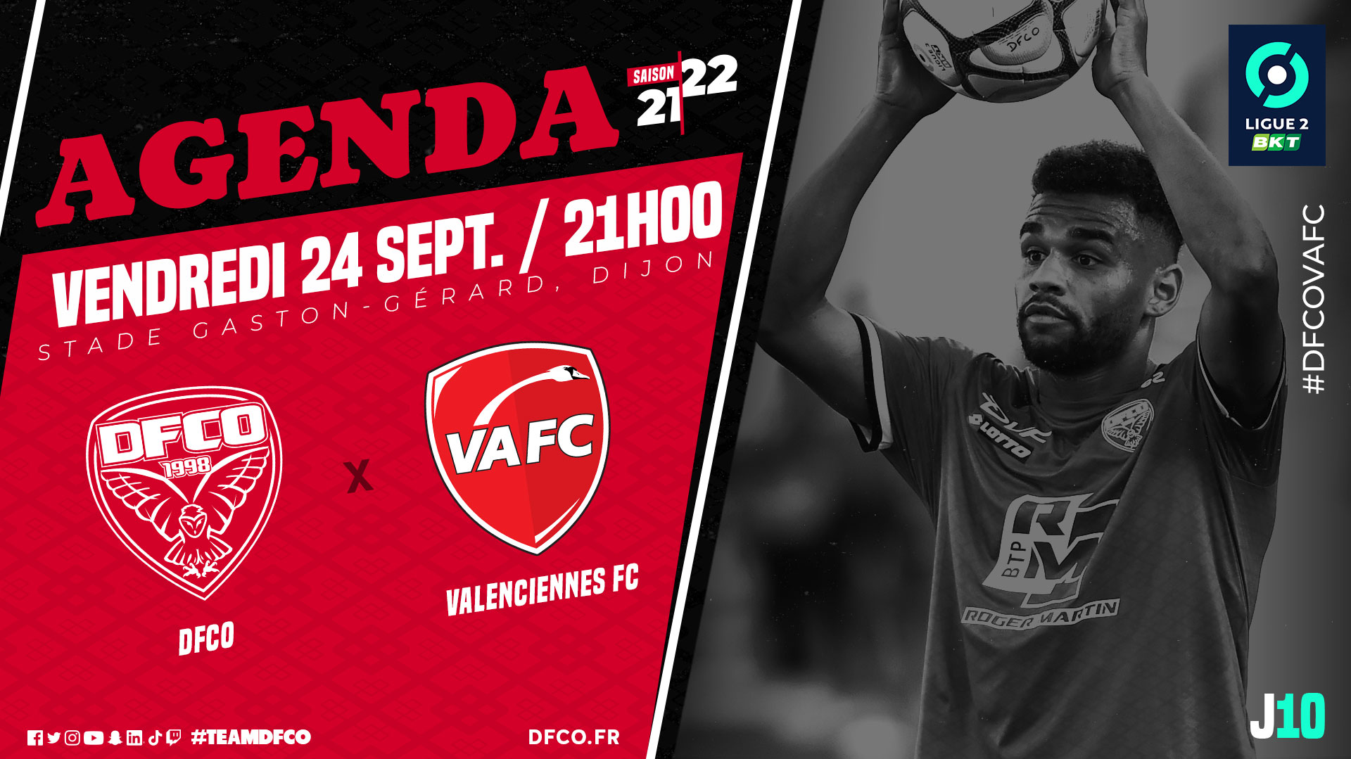 La LFP a annoncé la programmation TV de la 10e journée de L2 BKT. Le DFCO recevra Valenciennes le vendredi 24 septembre à 21h00.