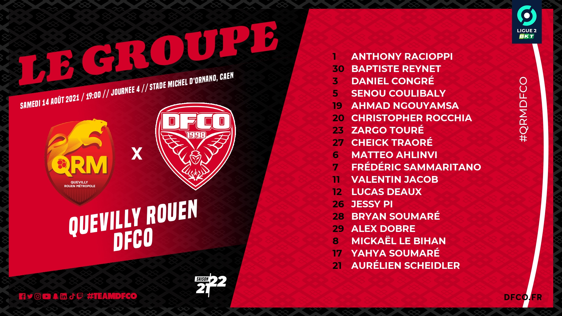 Quevilly Rouen – DFCO : le groupe dijonnais