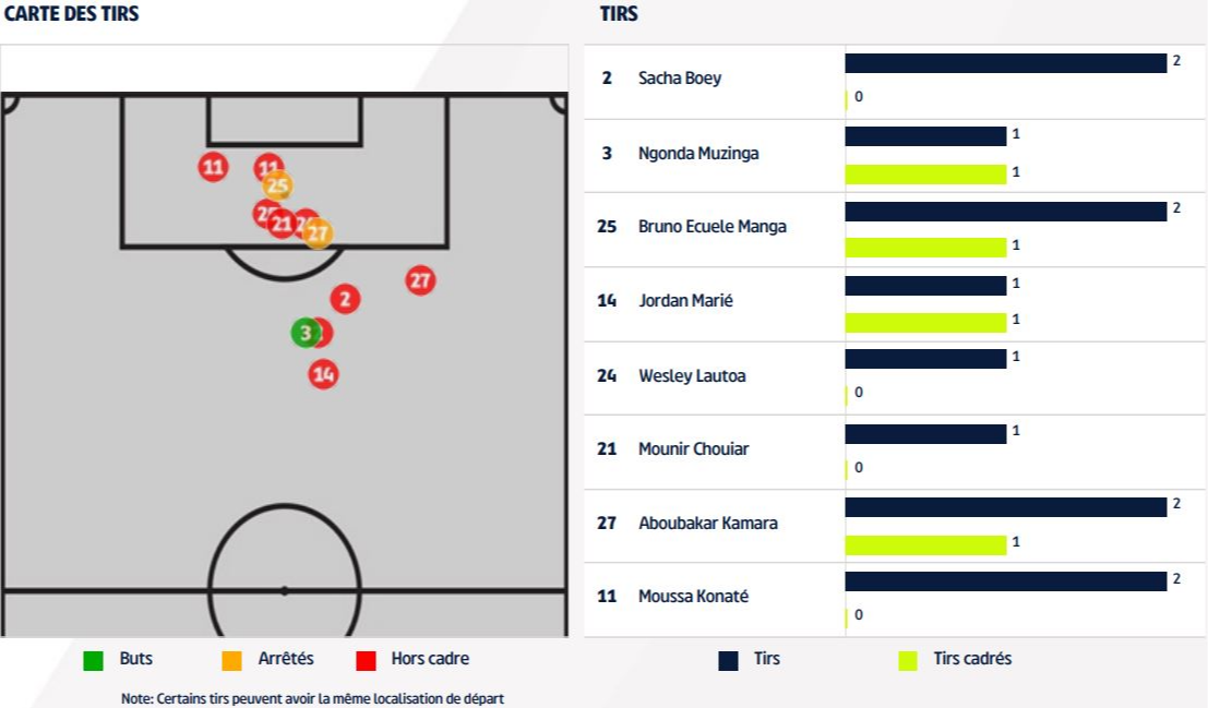 - Glody Ngonda a marqué son deuxième but en Ligue 1. Les deux fois, il a déclenché sa frappe depuis l'extérieur de la surface.