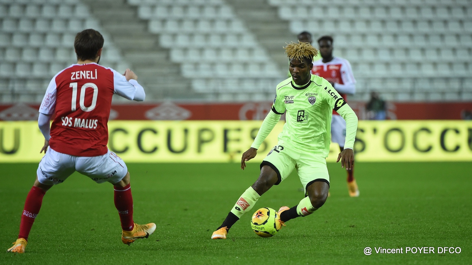 A Reims, stade Auguste-Delaune, le DFCO bat Reims (0-1).