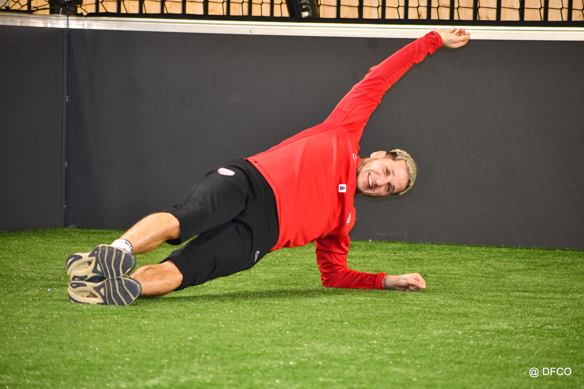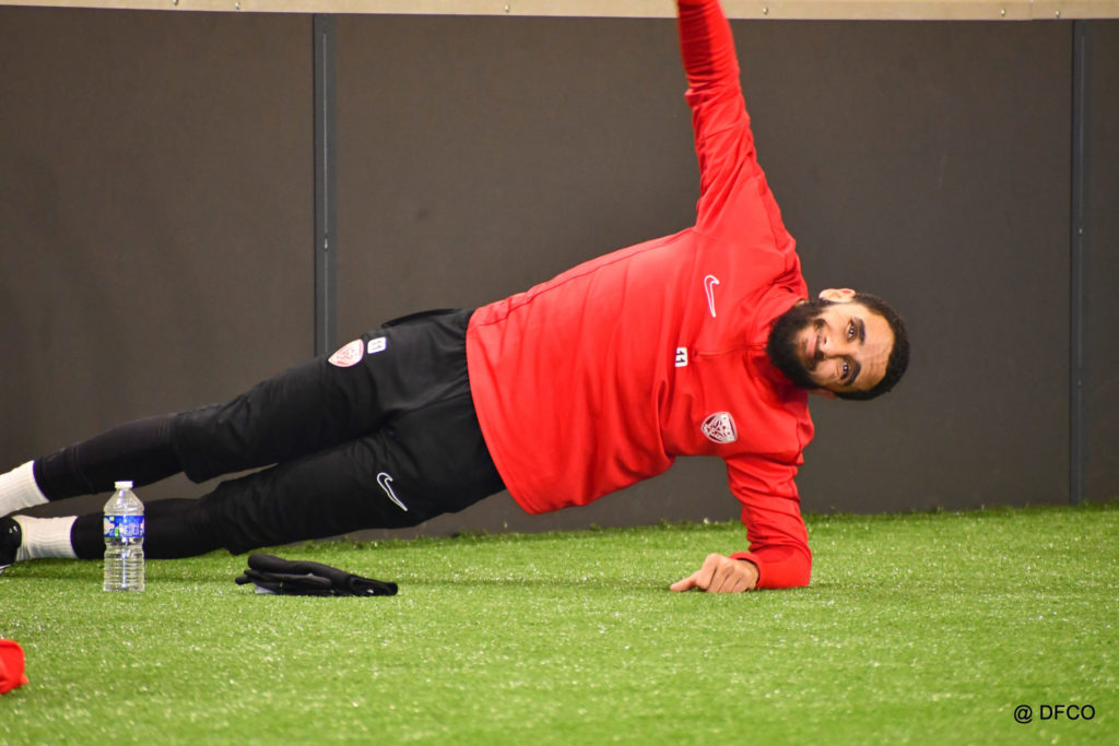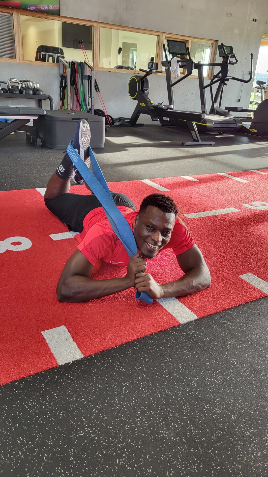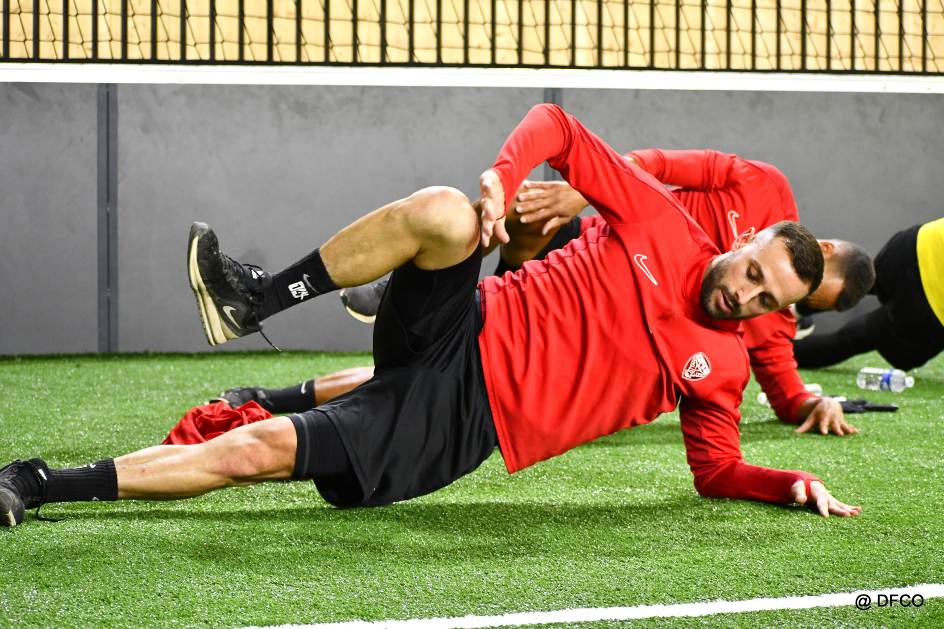 Alors que Joseph Mendes et Jordan Marié – de retour d’une longue période de blessure – étaient déjà en train de parfaire leur réathlétisation, l’ensemble de l’effectif avait rendez-vous à 15h00 pour la reprise des entraînements. Les sourires sur les visages traduisaient de vacances ressourçantes et d’un plaisir de se retrouver. Après quelques anecdotes sur les vacances, chaque joueur s’est rapidement remis au travail. En douceur pour commencer, en salle de musculation, puis de manière plus intensive au cours d’un footing de 6 kilomètres puis d’une séance de renforcement musculaire, en intérieur.