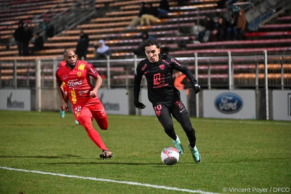 Entré en jeu 12 minutes plus tôt, Kader N’Chobi réduira le score d’un joli lob de 25 mètres sur un service en retrait de Zakaria Fdaouch (3-1, 80e). Le DFCO va poursuivre ses efforts pour tenter de revenir, mais Zakaria Fdaouch, bien servi par Bryan Soumaré, ne trompera pas Aymes dans un angle compliqué (87e). D’une belle parade, Robin Risser permettra enfin à son équipe d’éviter un quatrième but sur un penalty concédé par Kévin Schur (93e).