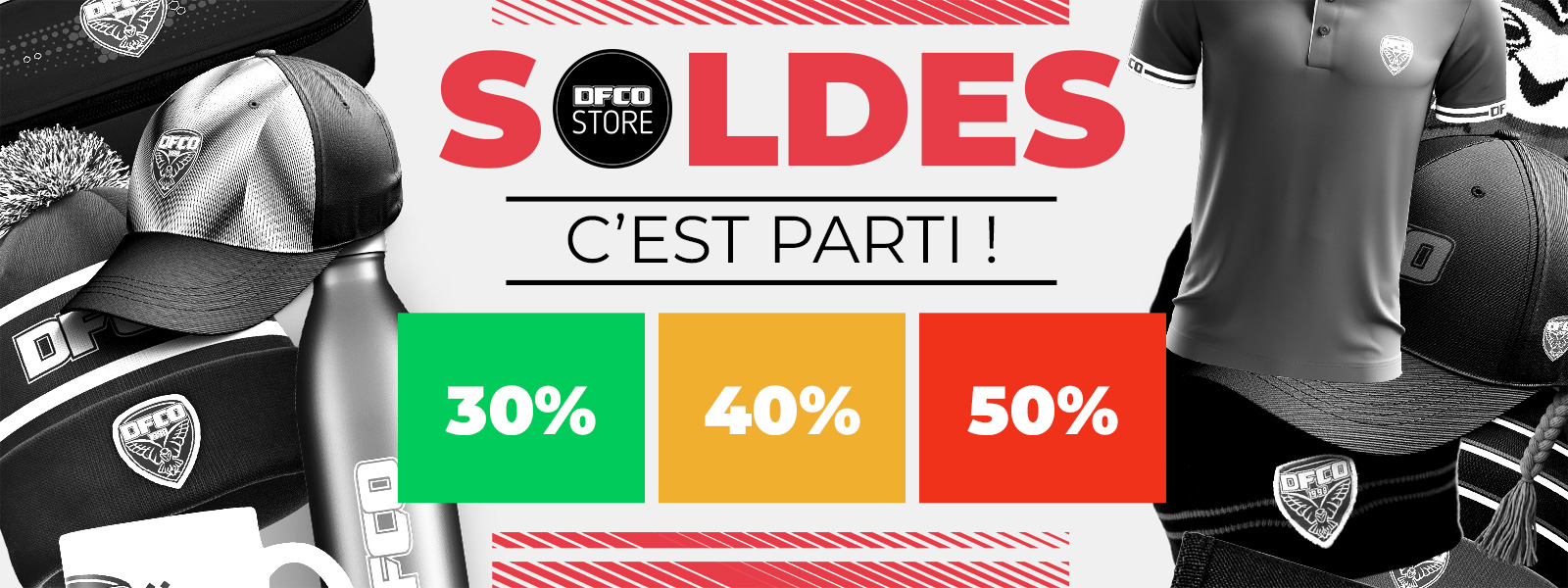 Dès ce mercredi 10 janvier, profitez de remises de -30 % à -50 % sur les goodies et des produits officiels du DFCO signés de notre équipementier NIKE ! Pour profiter de ces bonnes affaires, rendez-vous au DFCO Store (17 rue du stade, 21000 Dijon) ou sur notre boutique en ligne (cliquez ici) !