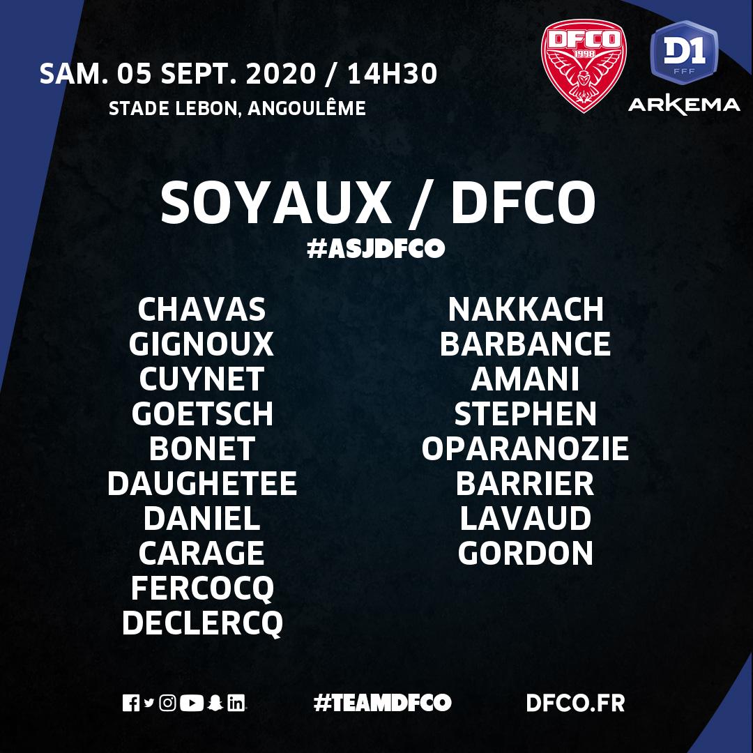 Pour le compte de la 1ère journée de D1 Arkema, le DFCO se déplace ce samedi (14h30) à Angoulême pour affronter Soyaux. Yannick Chandioux et son staff ont convoqué un groupe de 18 joueuses.