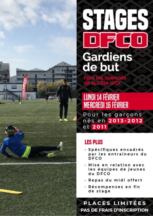 Le lundi 14 février et le mercredi 16 février seront organisés les prochaines stages DFCO spécial Gardiens de but. Les inscriptions sont ouvertes !